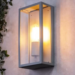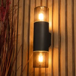 Rome Outdoor Round Up & Down Wall Light With Smoked Shade, Grey