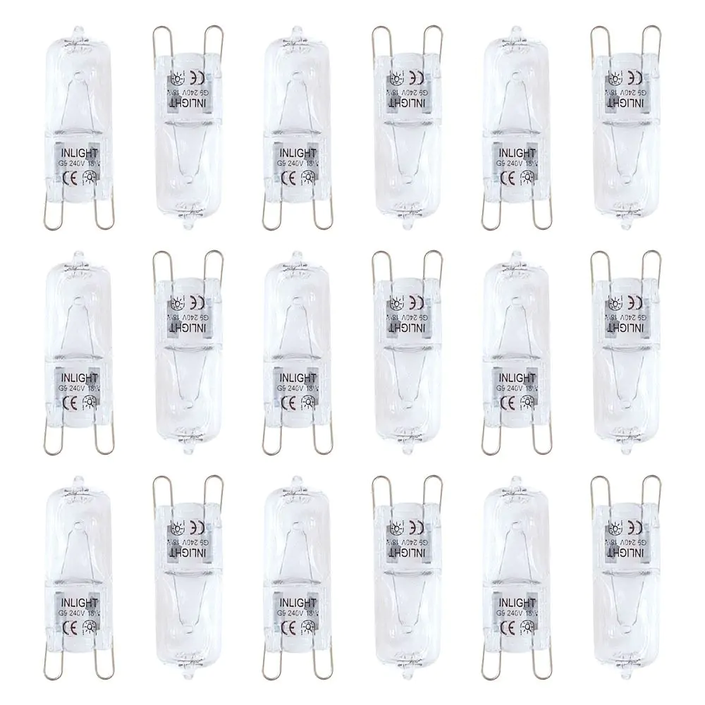 18 Pack of 18 Watt G9 Eco Halogen Light Bulbs, Clear