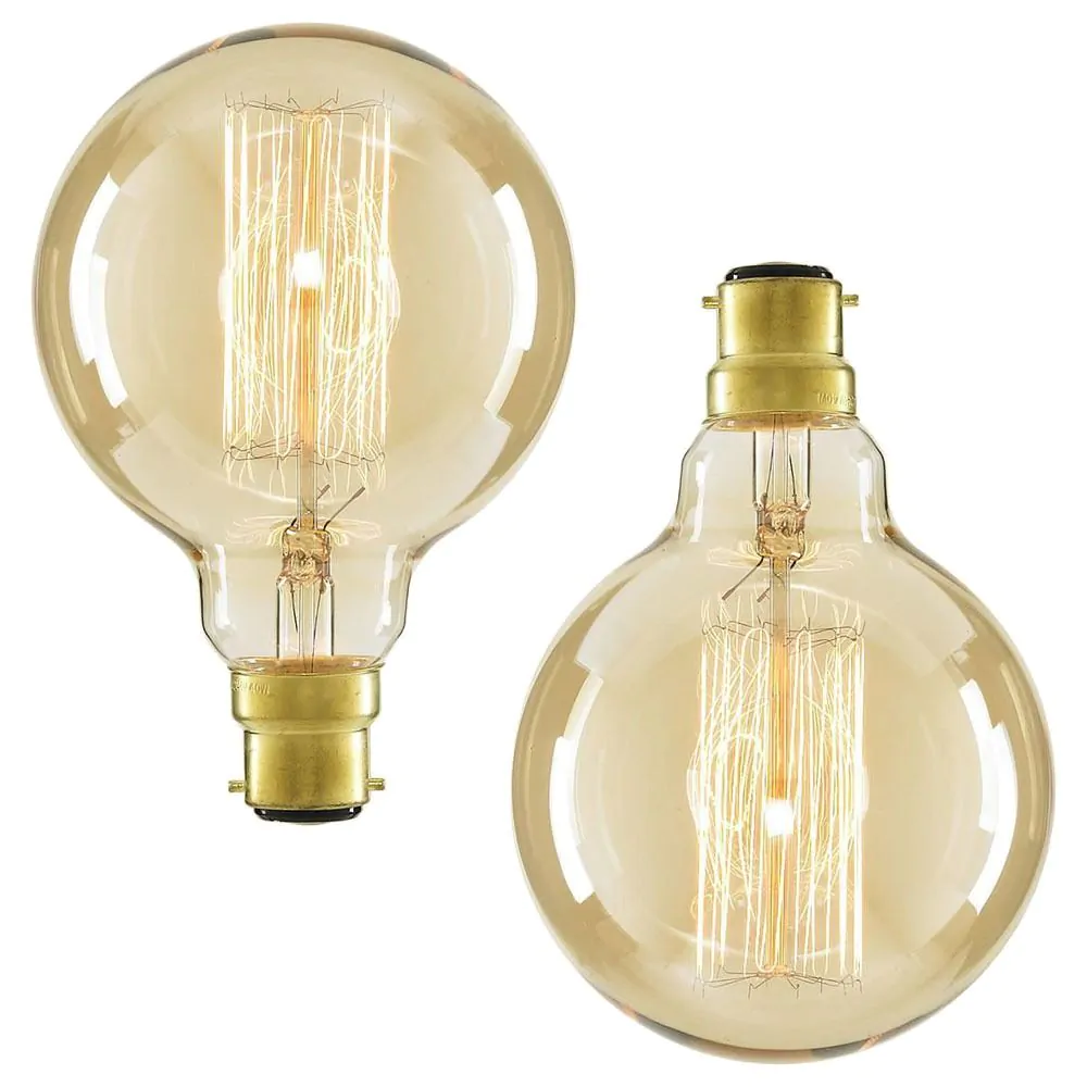 2 Pack of 40W BC B22 Vintage Filament Globe Bulb, Gold Tinted