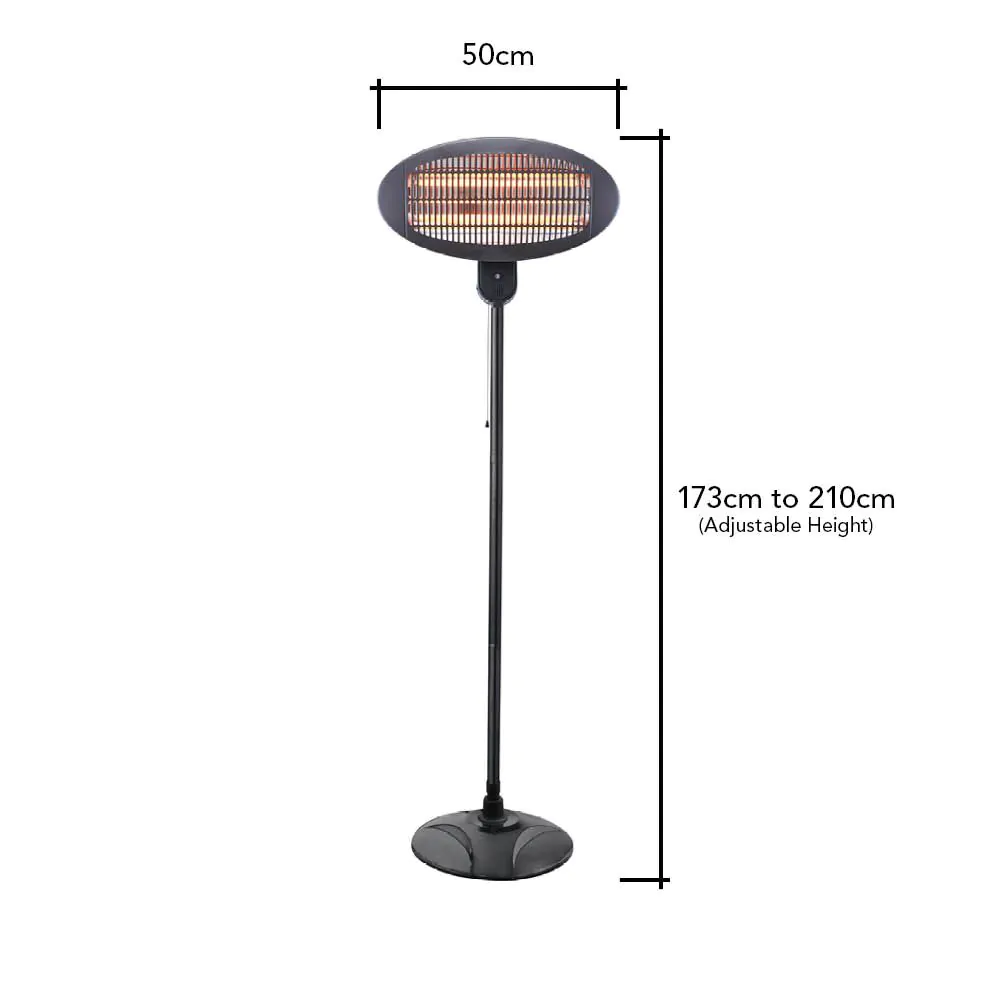 2000 Watt Floor Standing Carbon Element Patio Heater, Black