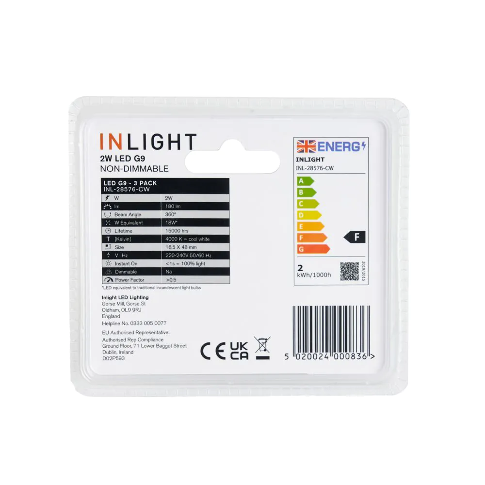 3 Pack of 2 Watt G9 LED Capsule Lamps 4000K, Cool White