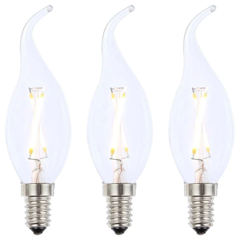 3 Pack of 2W LED SES E14 Vintage Filament Candle Bulb, Clear