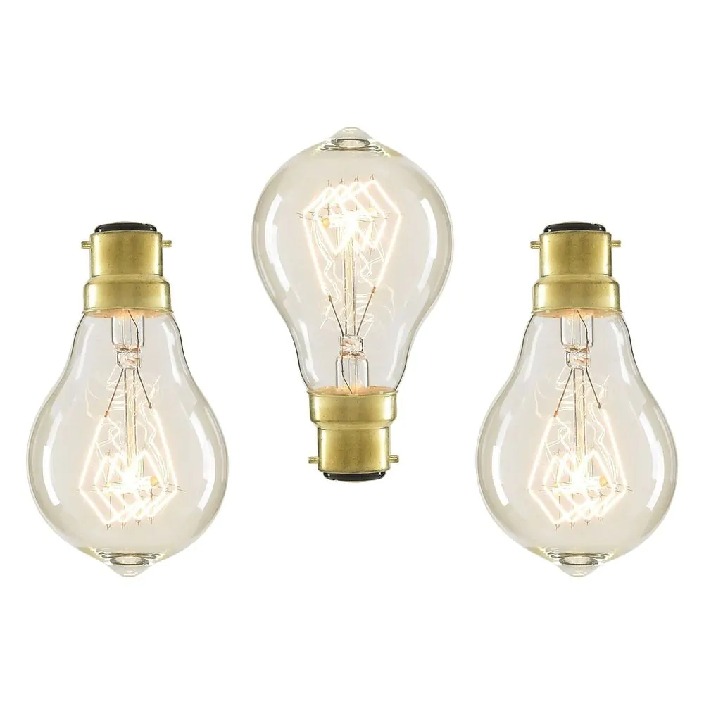 3 Pack of 40W BC B22 Vintage Filament Bulb, Clear