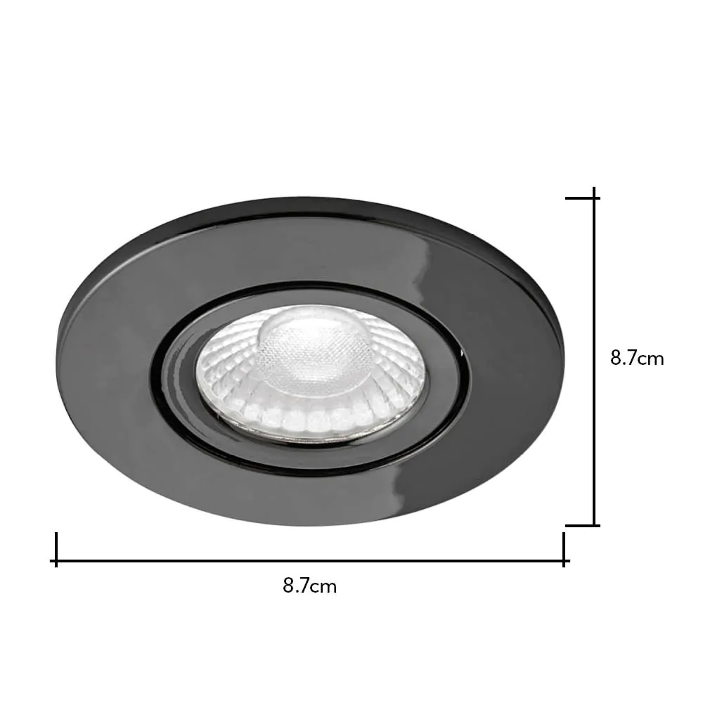 3 Pack of Ruva Fire Rated LED IP65 Downlight, Black Chrome