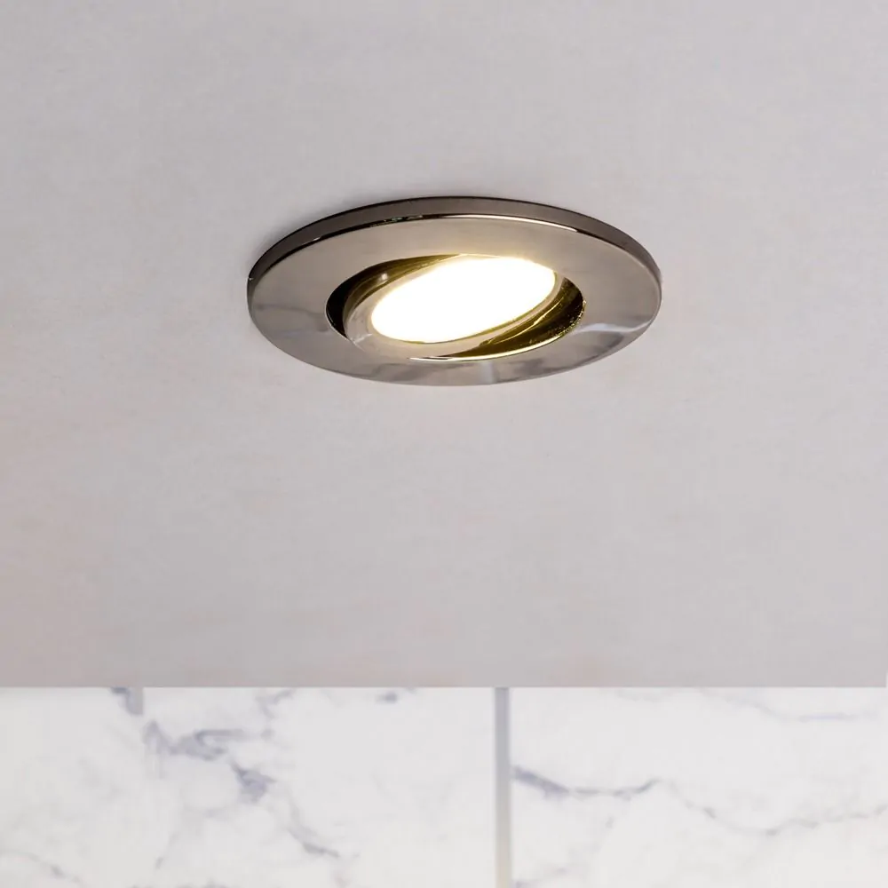 Create a consistent theme within your home with the 3 Pack of Ruva Fire Rated LED IP65 Downlights. These recessed spotlights are IP65 rated, meaning that they can be used as an overhead shower light and feature a 4000K natural white shine, offering a bright and practical task light. It also comes in a modern black chrome finish and is adjustable so that you can tilt the light in any direction of your choosing.