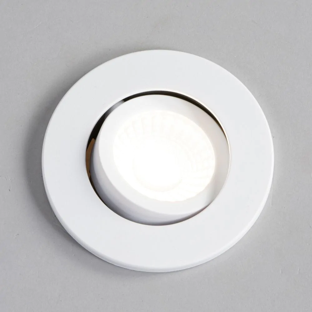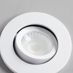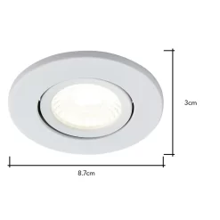 Seamless lighting designs for modern interiors with this 3 Pack of Ruva Fire Rated LED IP65 Downlights. These recessed light fittings come in a matte white finish which blends perfectly with white ceilings, and is tiltable; meaning you can adjust the direction of light to suit your preference. It is also IP65 rated, making this light water resistant enough to be used as an overhead shower light in the bathroom, and features a 4000K natural white shine.