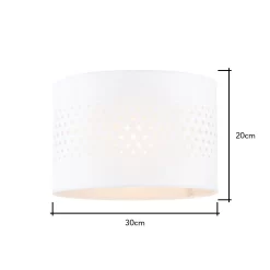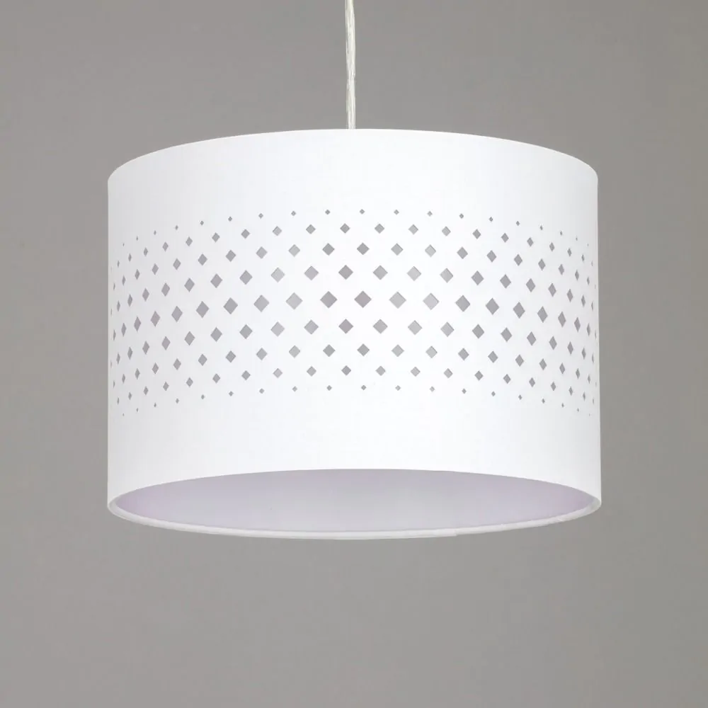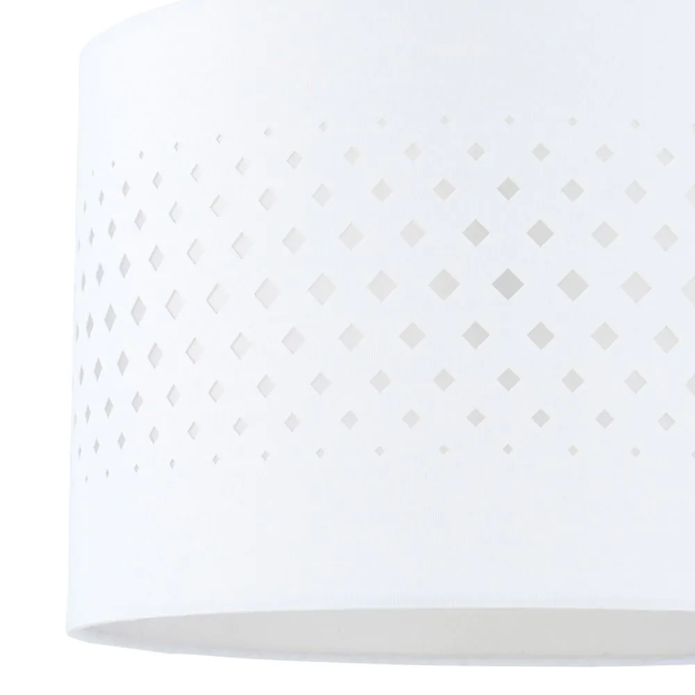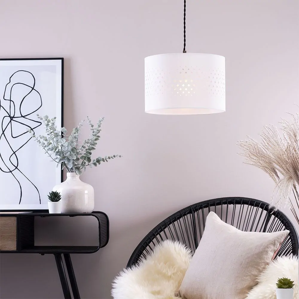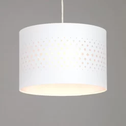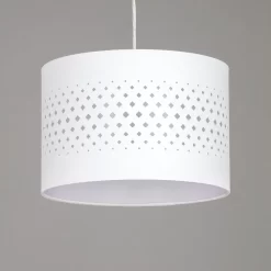 Our new 30cm Laser Cut Shade brings a modern vibe to your home, with a clean, white finish that opens up your room and provides a fresh style, fitting any space perfectly. The cylindrical shade features a beautiful assortment of laser cut diamond details, each allowing the light to shine through into a stunning display in your room.