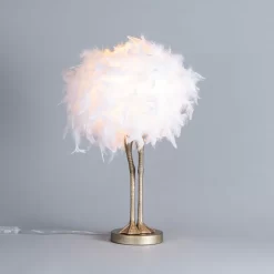 Ada Ostrich is an exquisite table lamp that is certain to add a touch of elegance to your home décor. This lamp would look incredible placed in a chic dressing room or in a living room for a light, airy feel. The magnificently detailed golden finish on Ava’s legs creates a deluxe aesthetic, enhanced by the beautiful array of white feathers surrounding the lightbulb. This projects a divine glow that is sure to bring a beautiful warm ambience into your home.