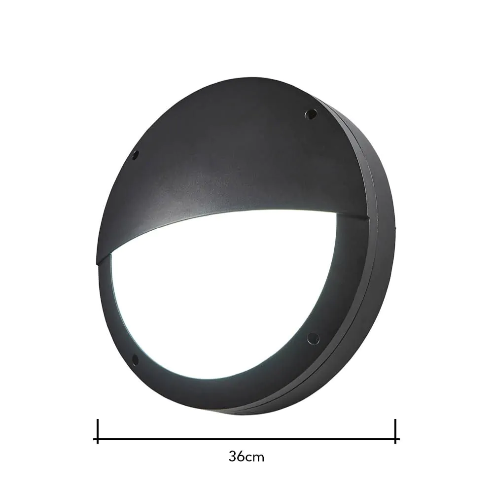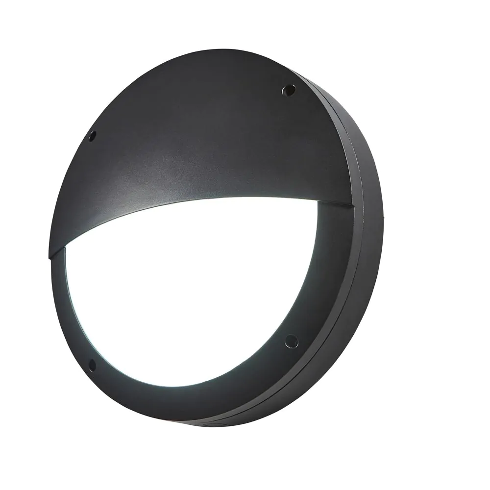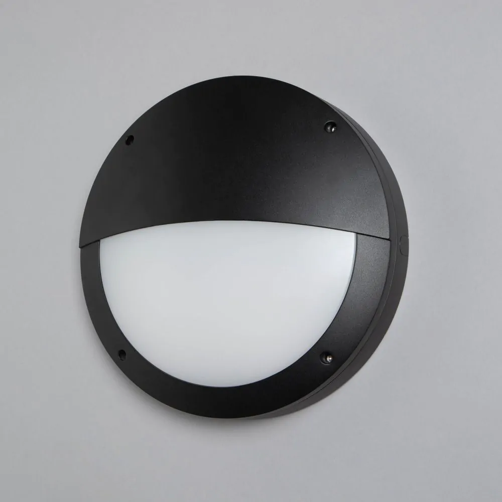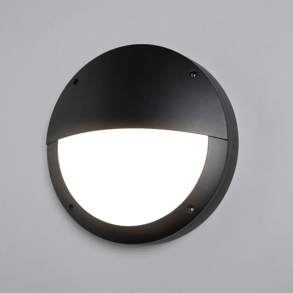 Alf Outdoor Round Eyelid Bulkhead Wall Light, Black