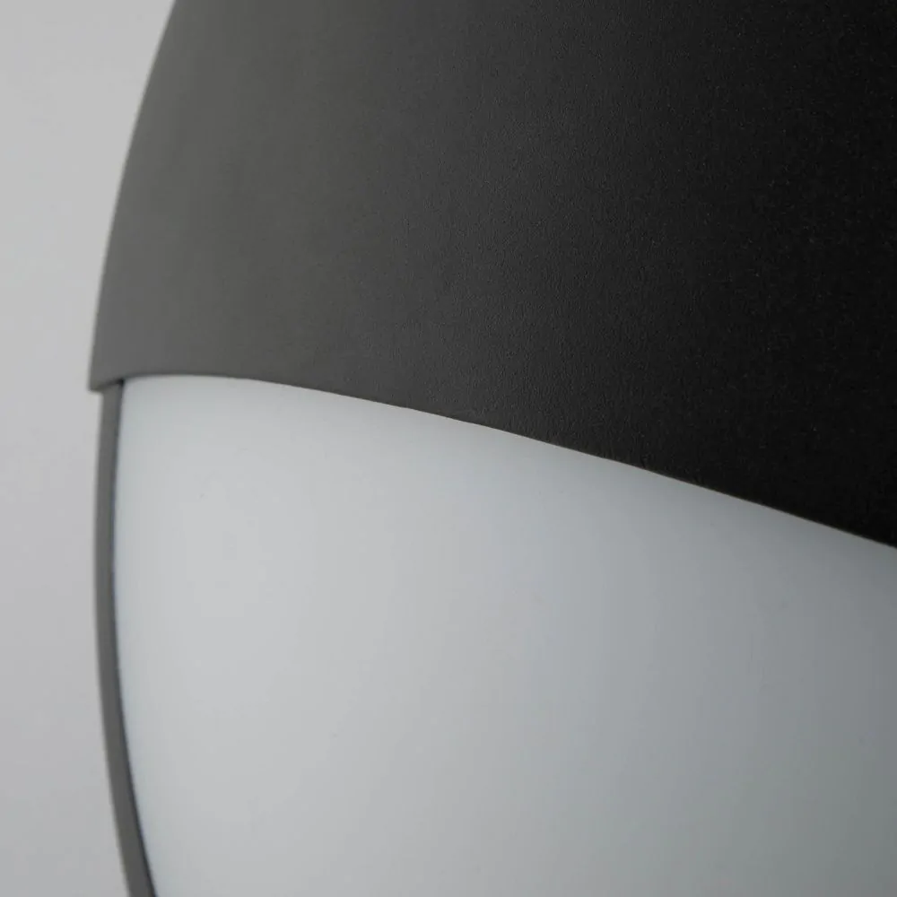 Minimalist outdoor lighting styles for your home with the Alf Outdoor Round Eyelid Bulkhead Wall Light. This wall light is extra durable against outdoor weather conditions and corrosion due to its IP65 rating, making for long lasting illumination. It also comes in a sleek black finish with an eyelid design for a contrasting look with the white opal shade, allowing bright and practical illumination to be projected outwards.