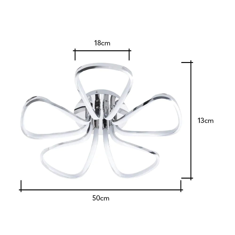 The Alvar Petals LED Flush Ceiling Light brings a lustrous, stylish, modern ambience into your home. The abstract flower petal design is sure to be a beautiful addition to your living room. In this flawless chrome finish, the light could fit in with any colour scheme adding a modern touch of luxury to your living room.