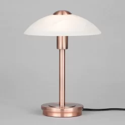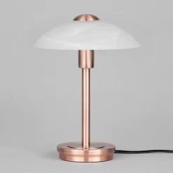 Any copper light fitting has the ability to add that contemporary style to your home which is seen so often in the current world of lighting. This Archie touch table lamp comes in an antique brushed copper finish, adding a modern feature to almost any interior, perfect as a bedside table lamp in particular. The copper finish compliments the traditional alabaster glass shade, creating a touch sensitive lamp which has the perfect balance of classic and modern features. The ‘touch sensitive feature’ allows you to switch the light on and off simply by tapping the base of the fitting, ideal for practical lighting in the home.