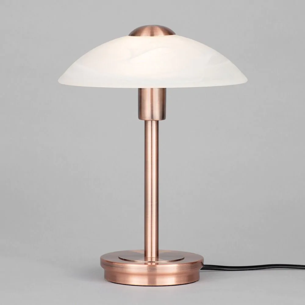 Archie Touch Table Lamp, Antique Brushed Copper and Alabaster