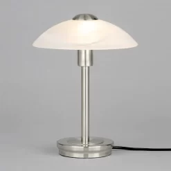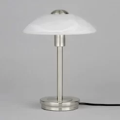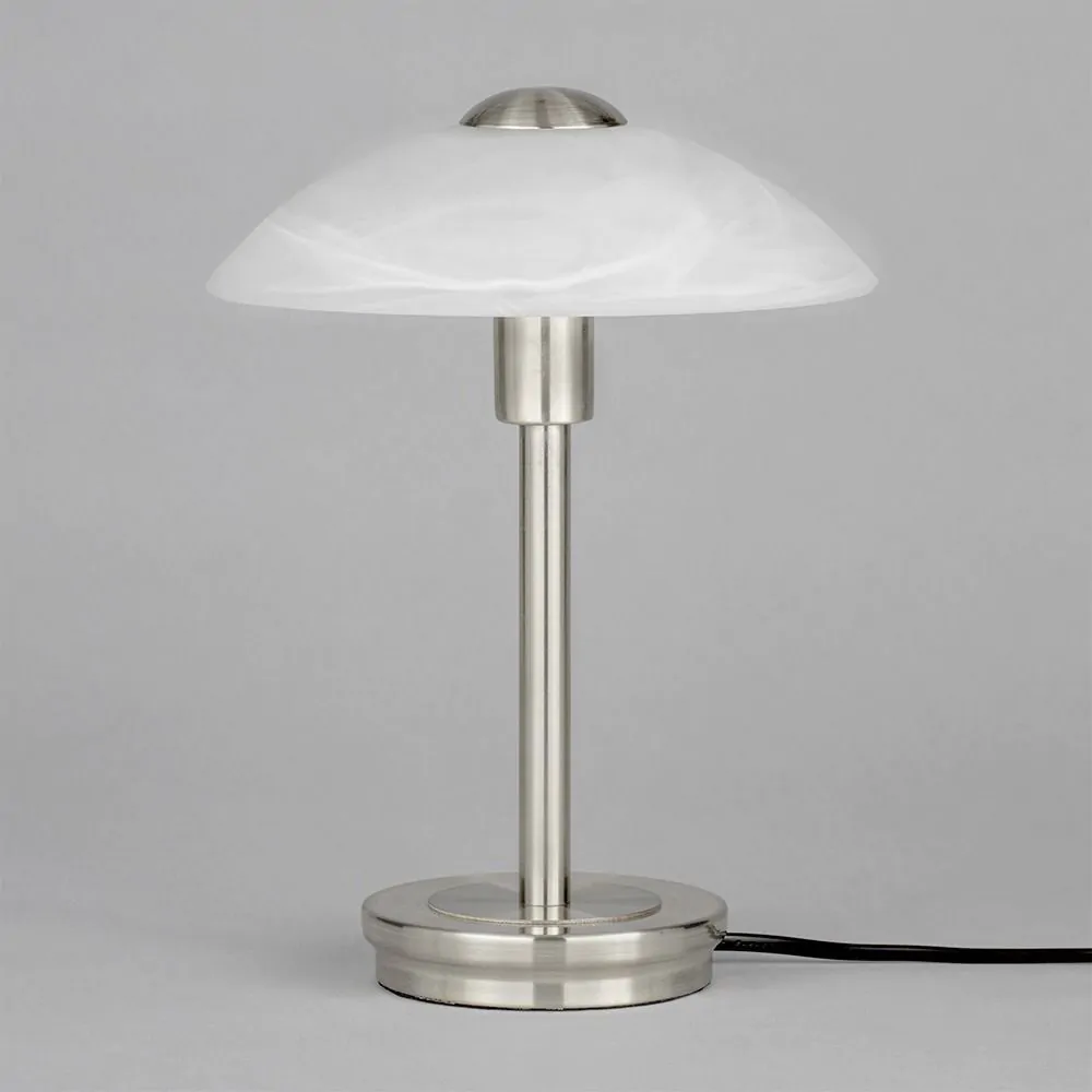 Archie Touch Lamp, Satin Nickel and Alabaster