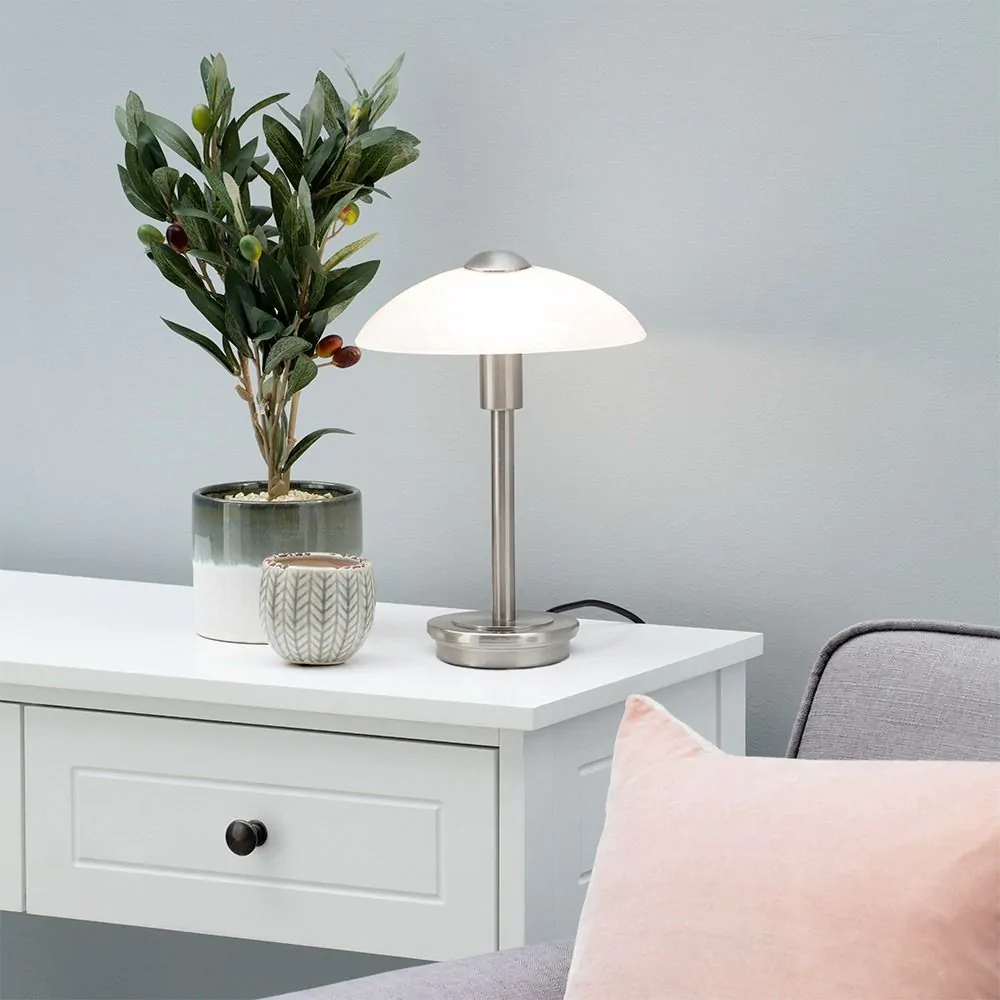 - Touch sensitive lamp can be switched on and off by tapping the base;