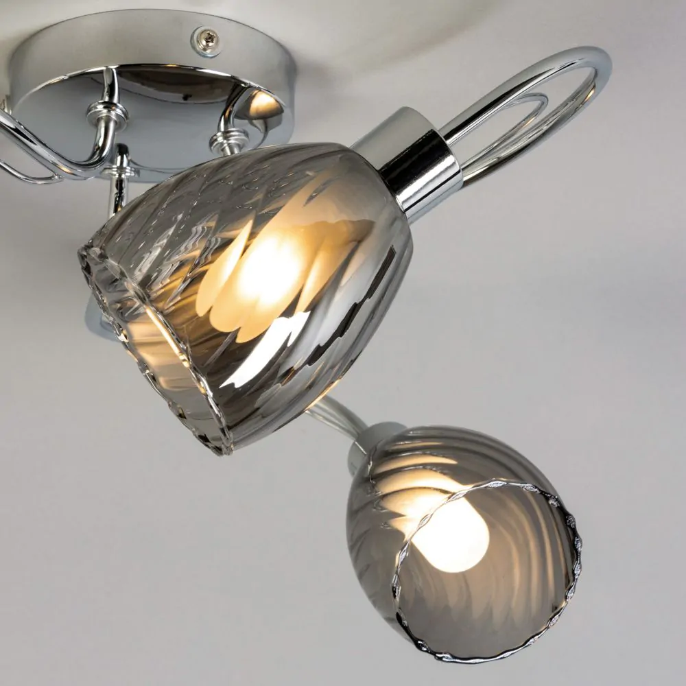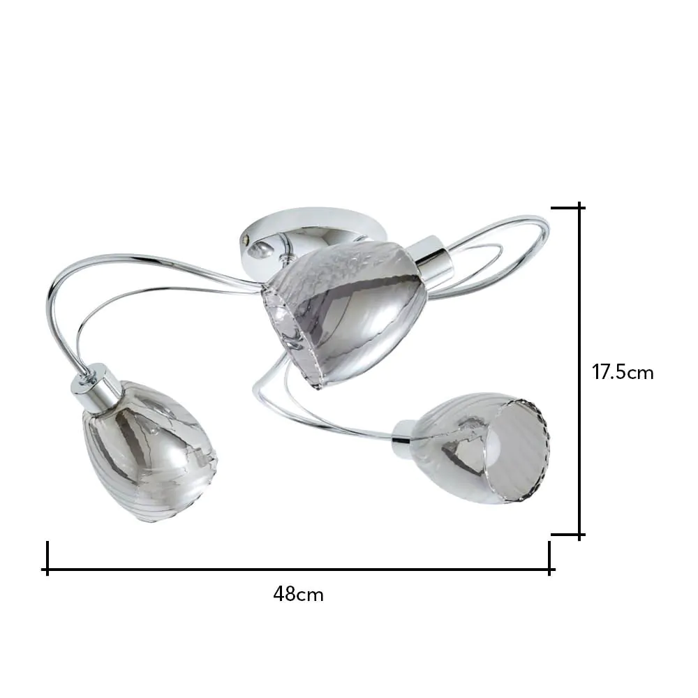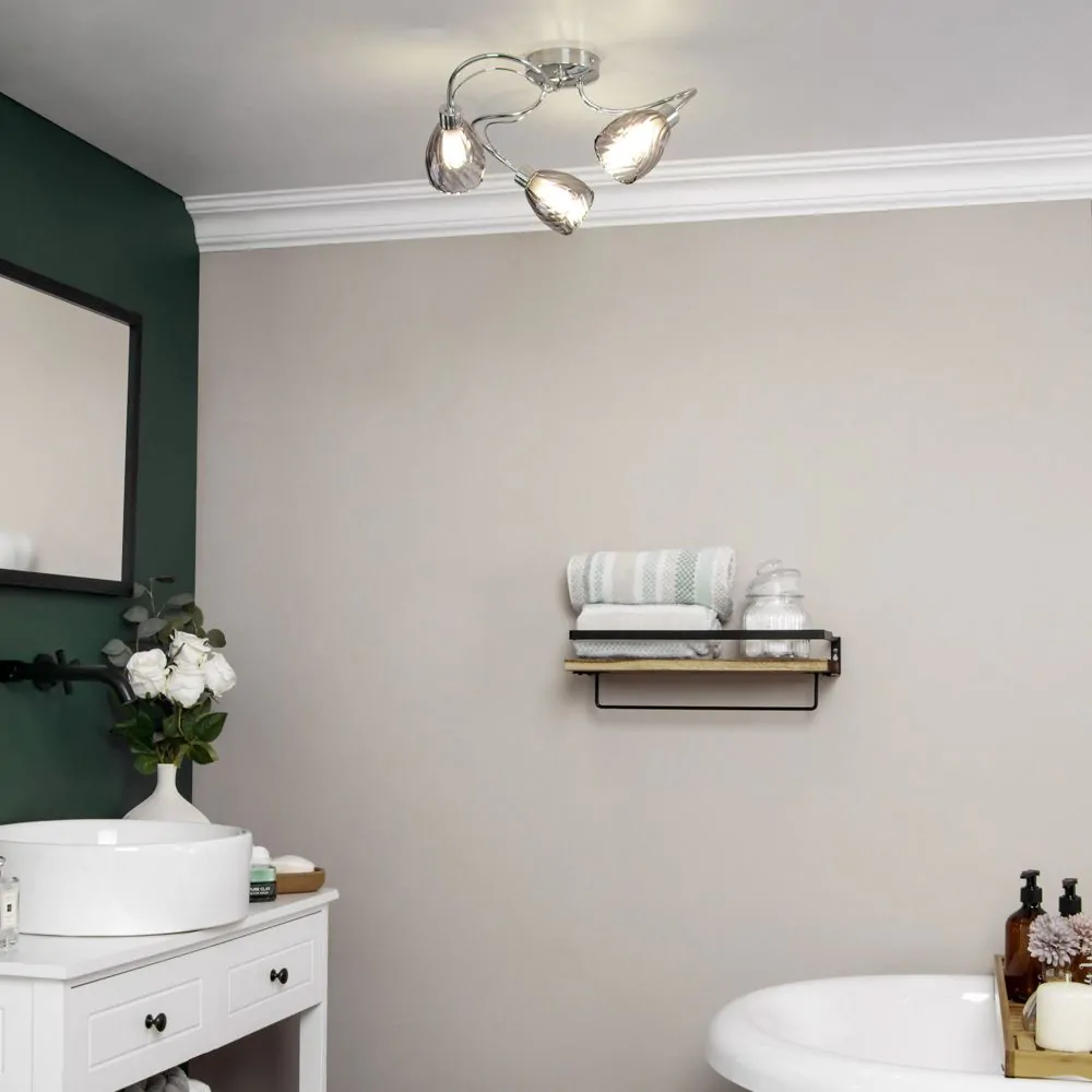 The Arya Tangle Bathroom Flush Ceiling Light in chrome is a stylish light fitting that is perfect for any home. The tangled arms give this light a unique appearance, while the textured glass shades add a touch of elegance to it. The flush fitting makes this ceiling light a great choice for homes with limited space or low ceilings, allowing it to give you effective lighting, without invading your visual space. This ceiling light is also IP44 rated, meaning this light is suitable for but not limited to, bathroom use.