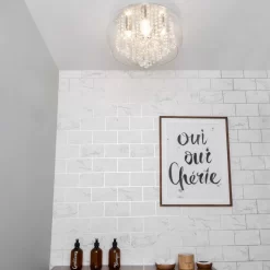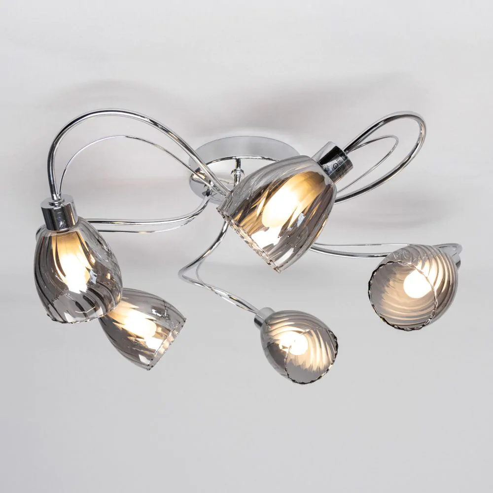 Sleek contemporary lighting designs for your décor wit the Arya Tangle Flush Bathroom Ceiling Light. This ceiling light is perfect for low ceilings due to the flush design and has a modern aesthetic due to the curved design, chrome finish, and textured smoke glass shades. It also is IP44 rated, ensuring that it is sufficiently water resistant to be styled as a bathroom light.