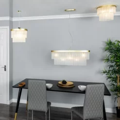Get stylish and chic lighting looks for low ceilings with the Aubrey Tiered Flush Ceiling Light. This ceiling flush light comes in a satin brass finish for a post modern aesthetic and features tiers of beautiful frosted glass bars for a warm glow diffused outwards. It is also ideal for low ceilings in hallways or landings due to the flush design providing a minimal drop height.