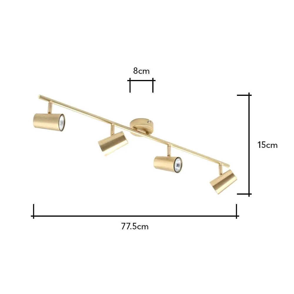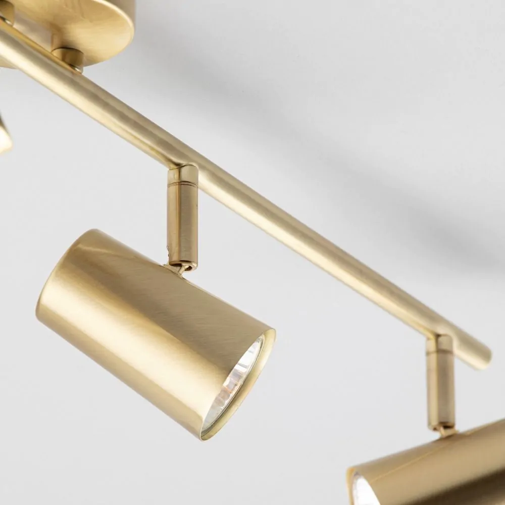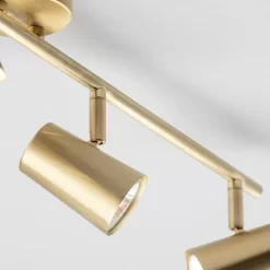 The Barley 4 Light Ceiling Spotlight Bar in satin brass brings practical illumination into your home. With 4 adjustable spotlights, you can emit light to even the drabbest of corners. The satin brass effect adds a stylish and sleek finish which makes it stand out.