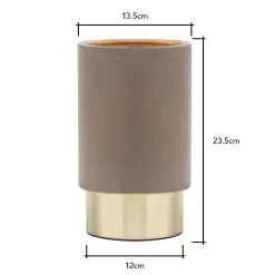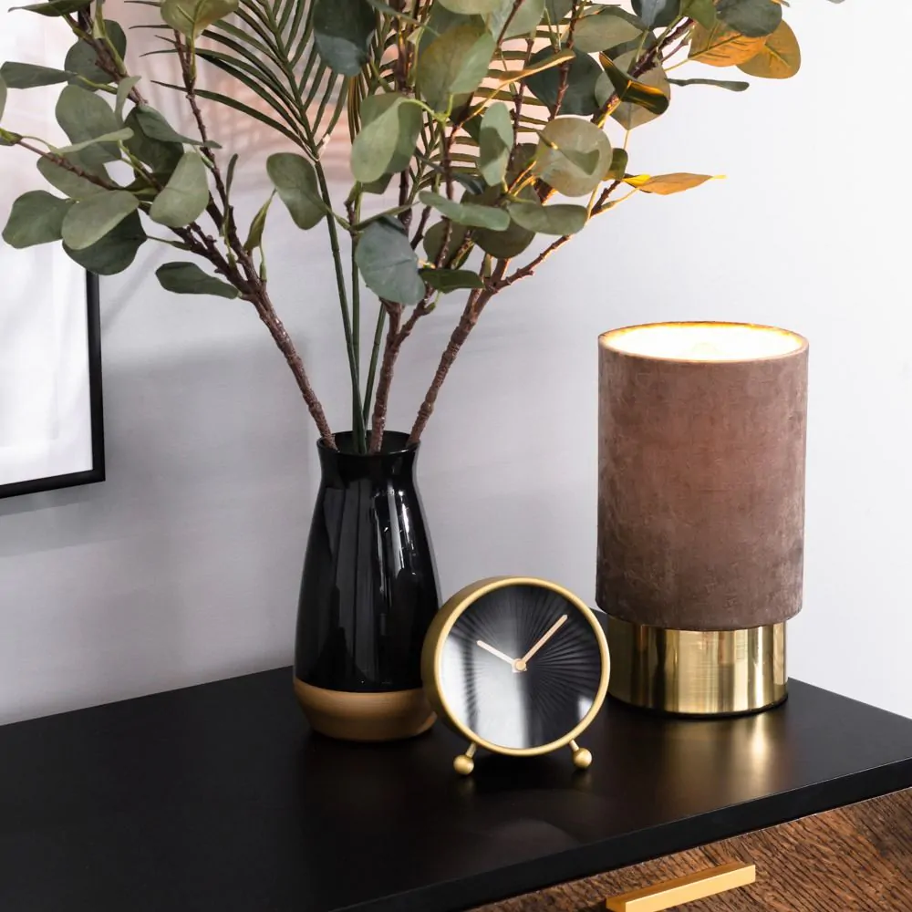 Add a modern, contemporary style to your home with the Beatrice Table Lamp. With a glamorous, gold base, the minimalistic body has a beautiful shine, creating an elegant look especially lit up by a warm glow. Atop the gold base sits a warm, brown diffuser shade, with a mid-century, retro aesthetic that gives a unique sense of character to the lamp while diffusing the light into a softer, warm glow, perfect for creating a mood in any living room or bedroom.
