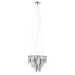 - Chrome shards add a contemporary flair to this elegant statement light.