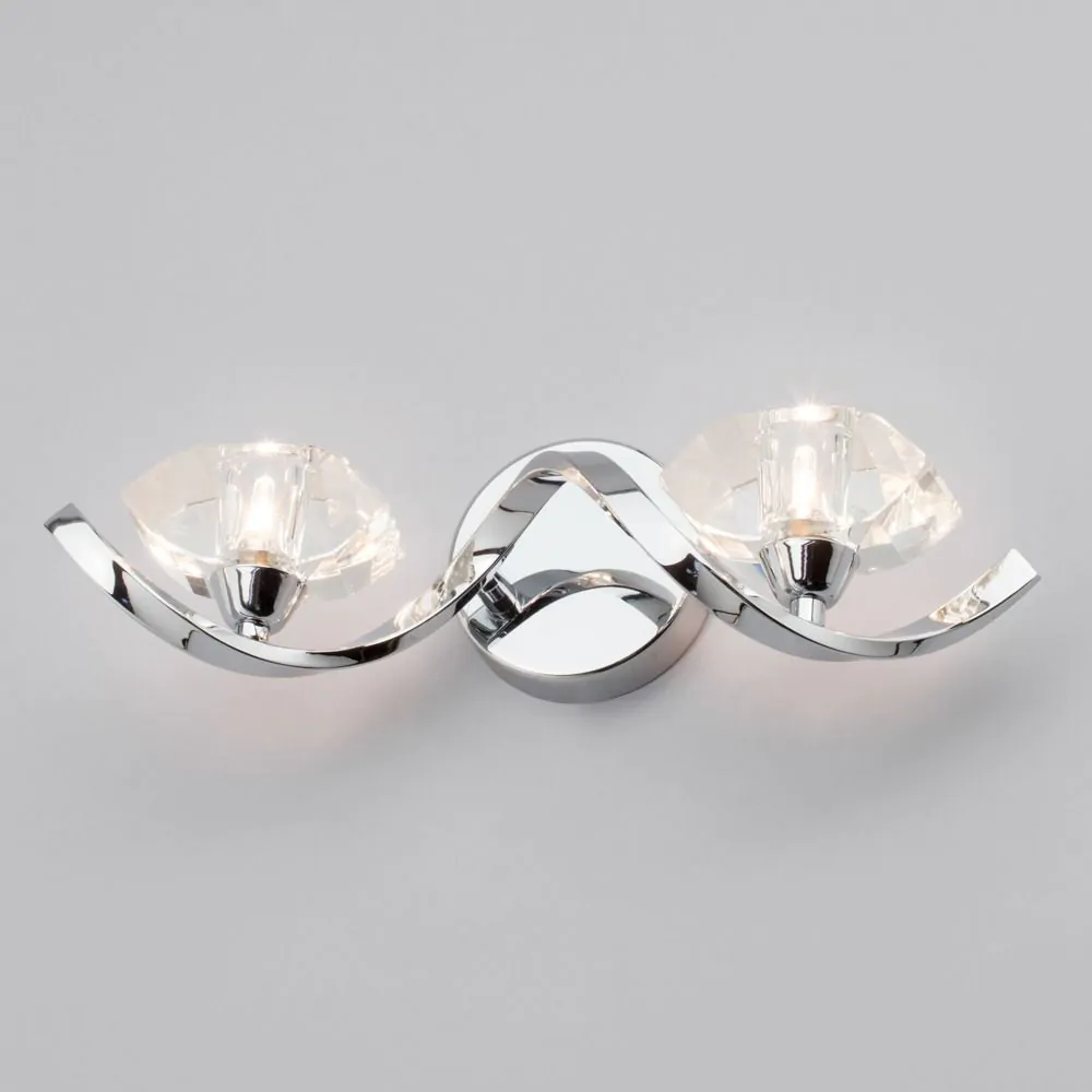 Our Bella Wall Light is the perfect addition to your lighting arrangements, providing optimal accent lighting in your room while doubling as a stylish, modern wall decoration. Finished in chrome, this wall light features 2 lightly curving arms on which the diamond-shaped shades sit, each holding a light within. This Shade design creates a beautiful, glamorous edge, reflecting the light into a beautiful patterned display within your room.