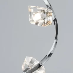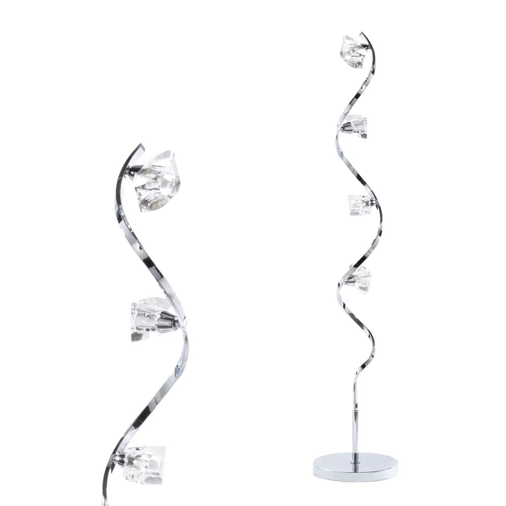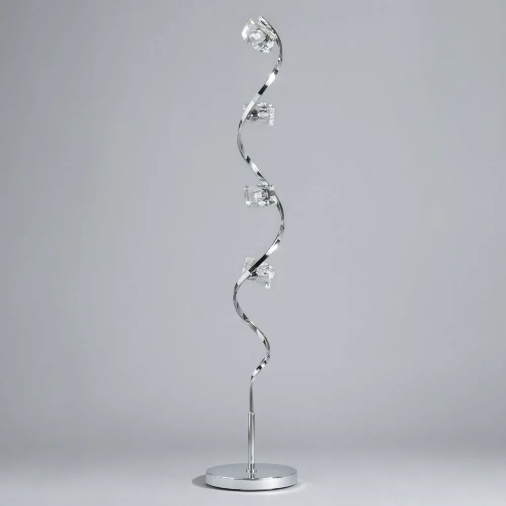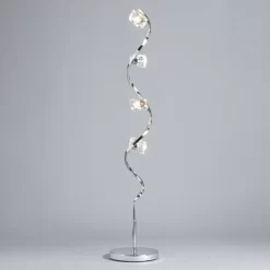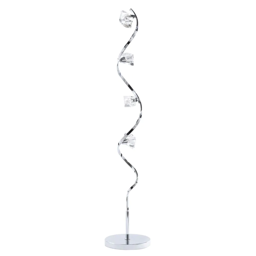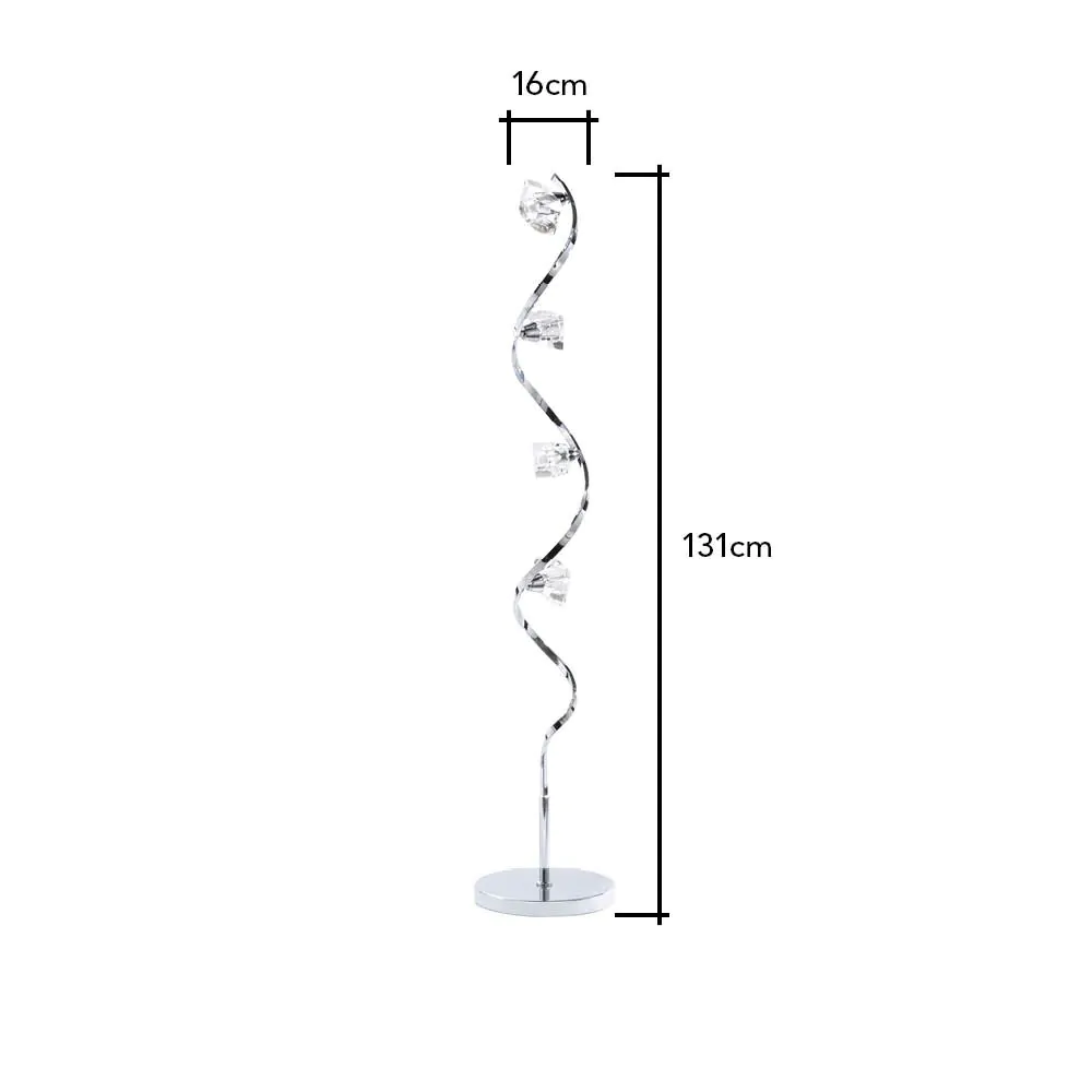 Bring a statement lighting look to your home with the Bella Wavy Floor Lamp. This stylish floor lamp features a curved chrome stand, offering a high shine contemporary aesthetic to your home and four diamond shaped crystal effect shades for an added touch of luxury. Style this floor lamp in any living room or bedroom for beautiful and modern style focal point in your home.