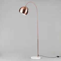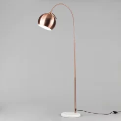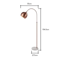 The Benson Curved Floor Lamp is a perfect addition to your interior lighting arrangements, creating a stylish look in any living room or dining room. The Copper floor lamp features a large, slim curving body that holds a dome shade, giving the fitting a minimal character while maintaining the vintage, industrial fashion evoked through the warm finish. The dome shade holds a light that can be accurately directed wherever you choose, aiding in task lighting when needed or simply for accenting your room.