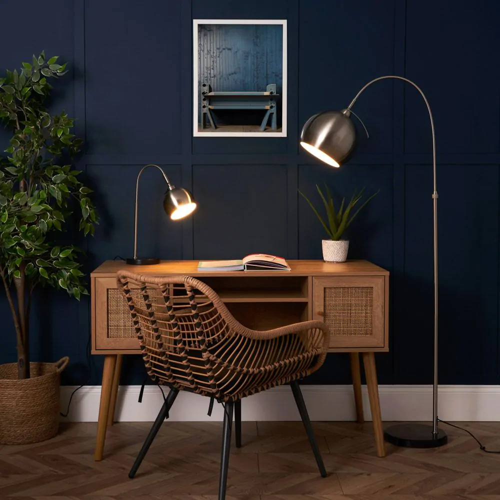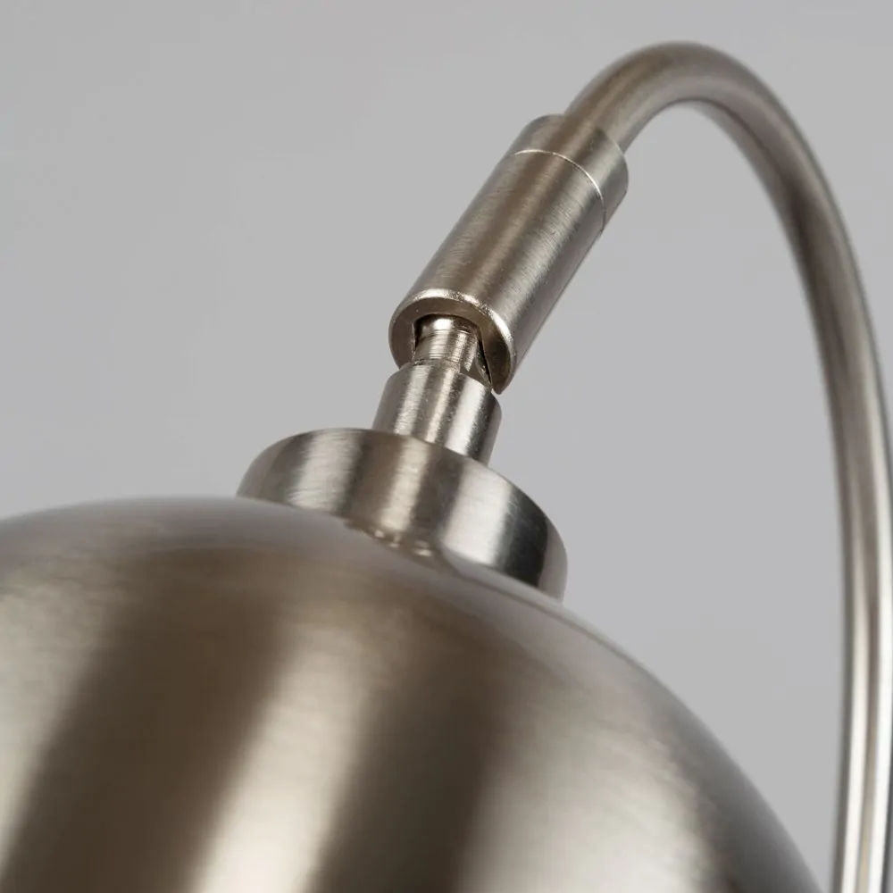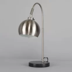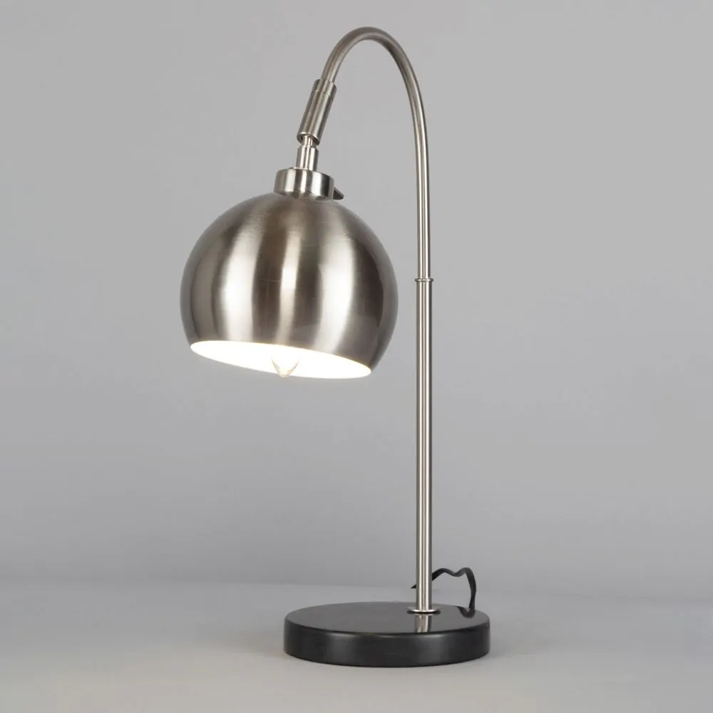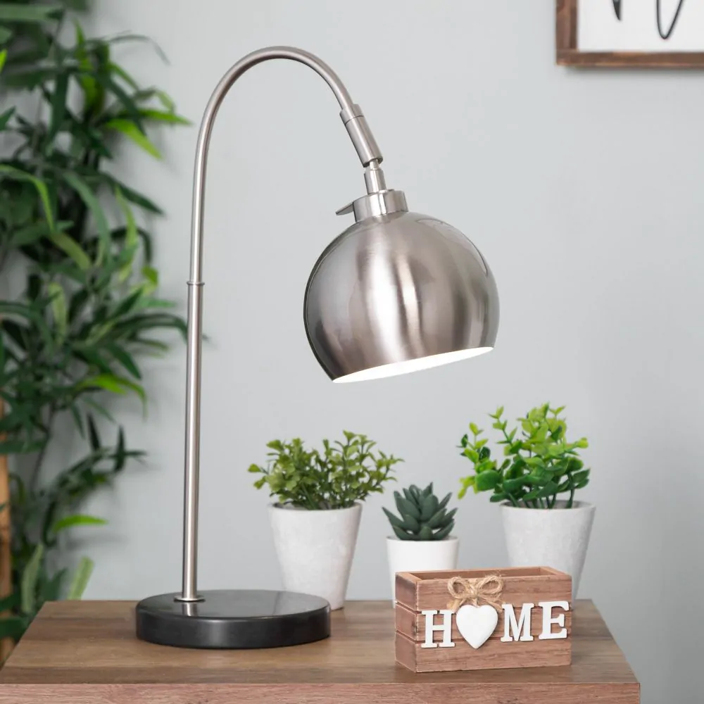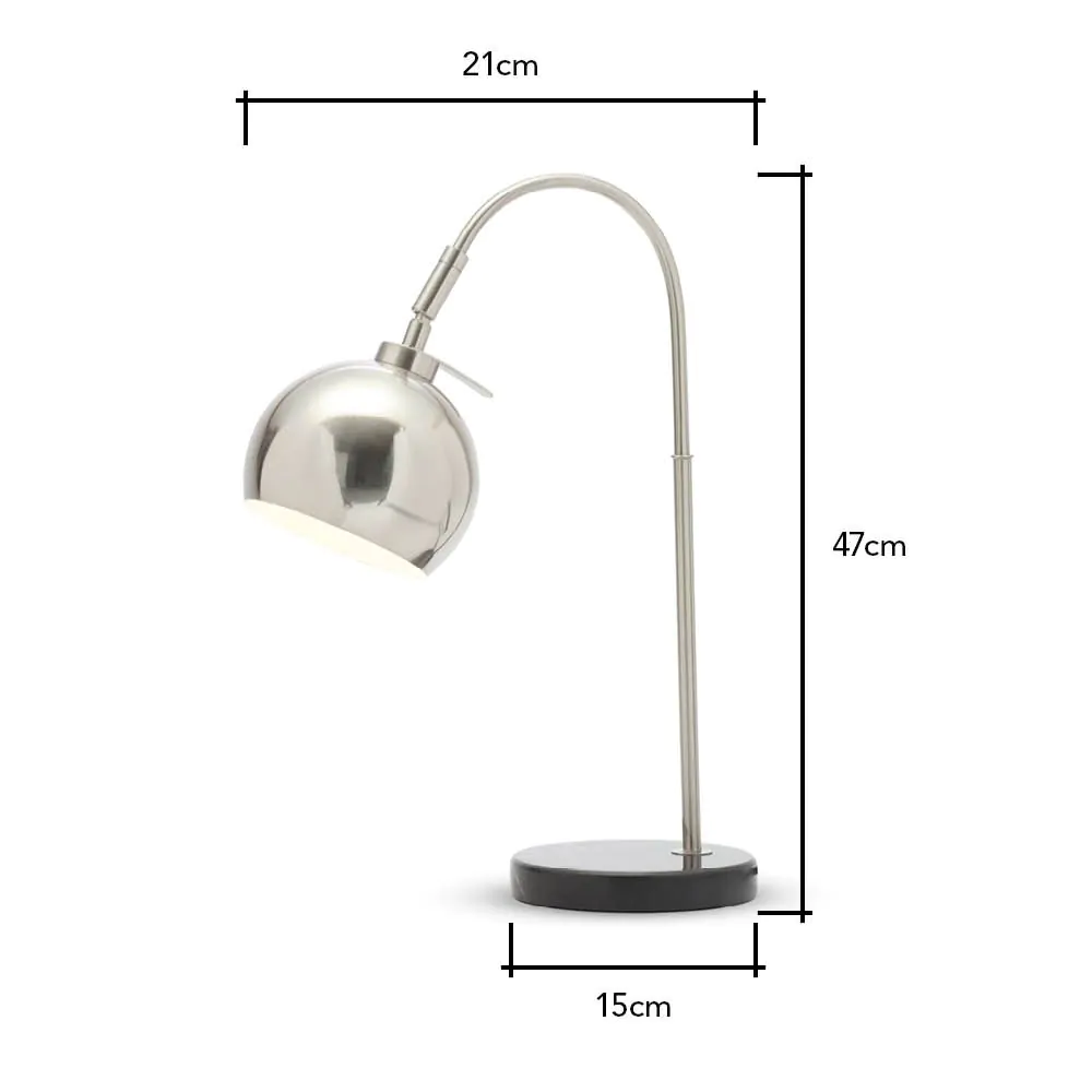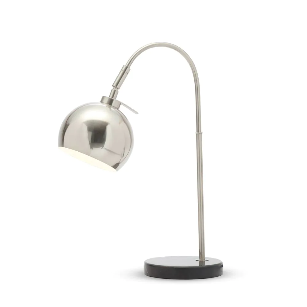 Bring a contemporary feel to your home with the Benson Curved Table Lamp in Satin Nickel. The satin nickel finish of this living room table lamp keeps with a modern minimalist style, contrasted wonderfully by the bold black marble base. The shade shape of the Benson makes it a perfect table task light.