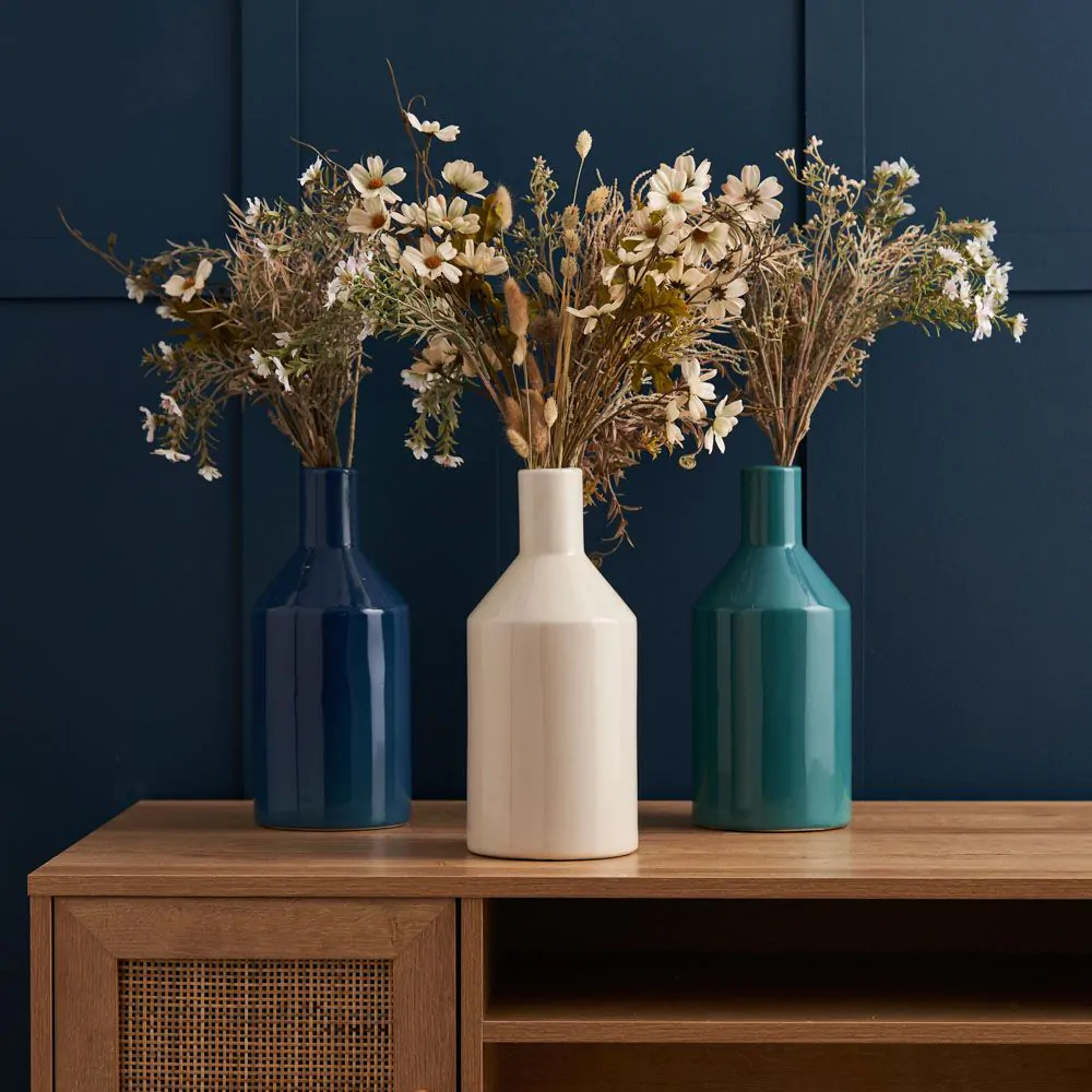 Enhance your interior with our Bottle Ceramic Vase in Cream, a timeless and elegant piece that adds a touch of sophistication to any space. The sleek bottle shape and creamy hue bring a classic and versatile aesthetic. This vase looks perfect in any neutral colour scheme and can be used to display flowers or single stems on any nightstand or side table.