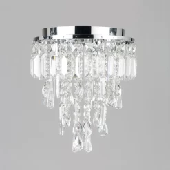Gorgeous lighting looks for low ceilings with the Bresna 3 Light Medium Flush. This stunning ceiling light comes in a chrome finish and features tiers of beautiful crystal effect droplets which sparkle as they reflect the light. It is also IP44 rated meaning that it is suitably water resistant enough to be used as a bathroom ceiling light.