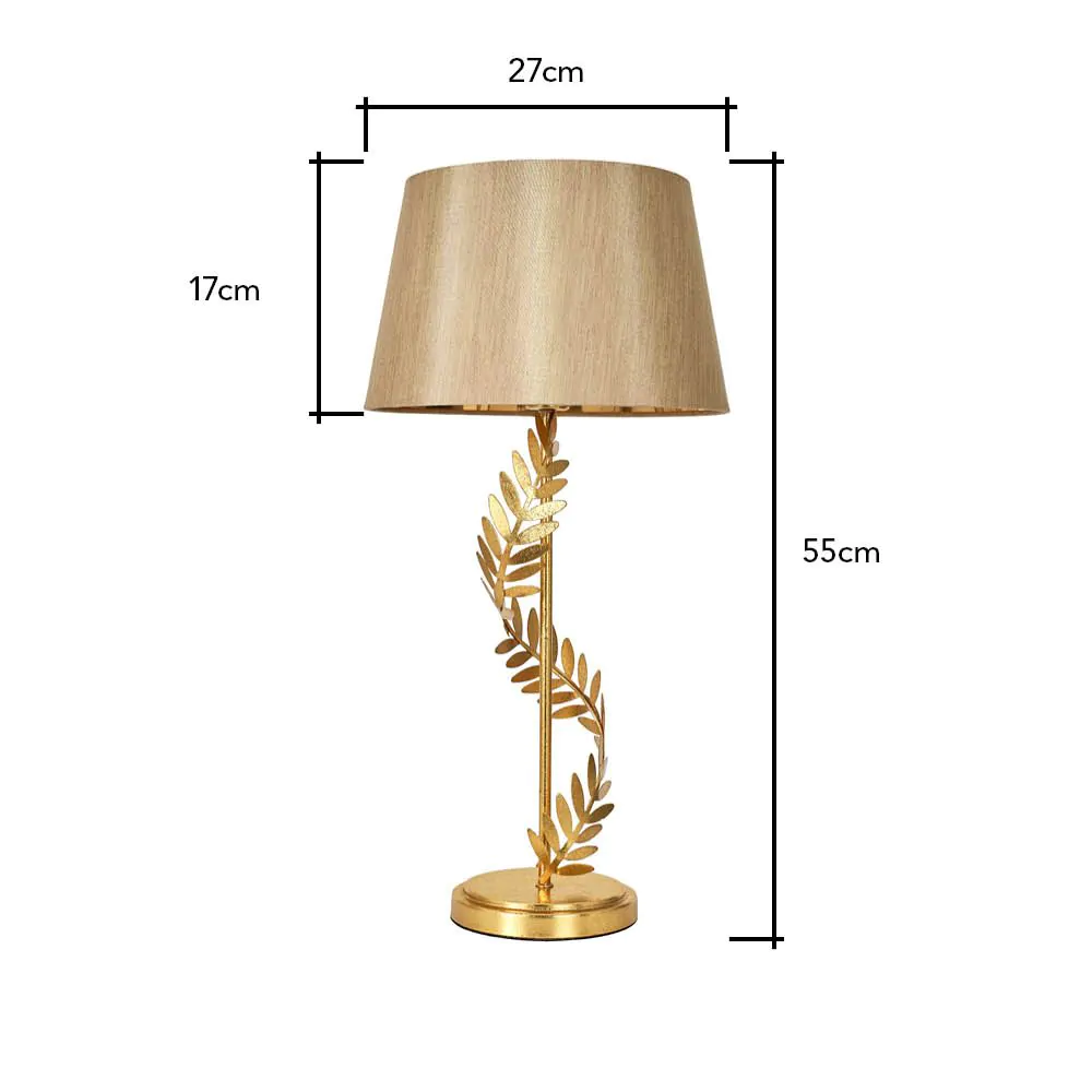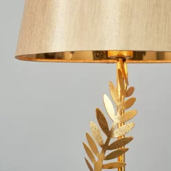 Bring a chic and stylish glow to your home with the Brookby Stem Table Lamp. This table lamp features a quirky and artistic palm leaf design and comes in stunning satin brass finish, perfect to compliment tropical, post modern, and eclectic decor. It also looks ideal when styled on any bedside table, desk, or sideboard, offering a gorgeous atmospheric illumination as the light reflects off the warm brass metallic finish