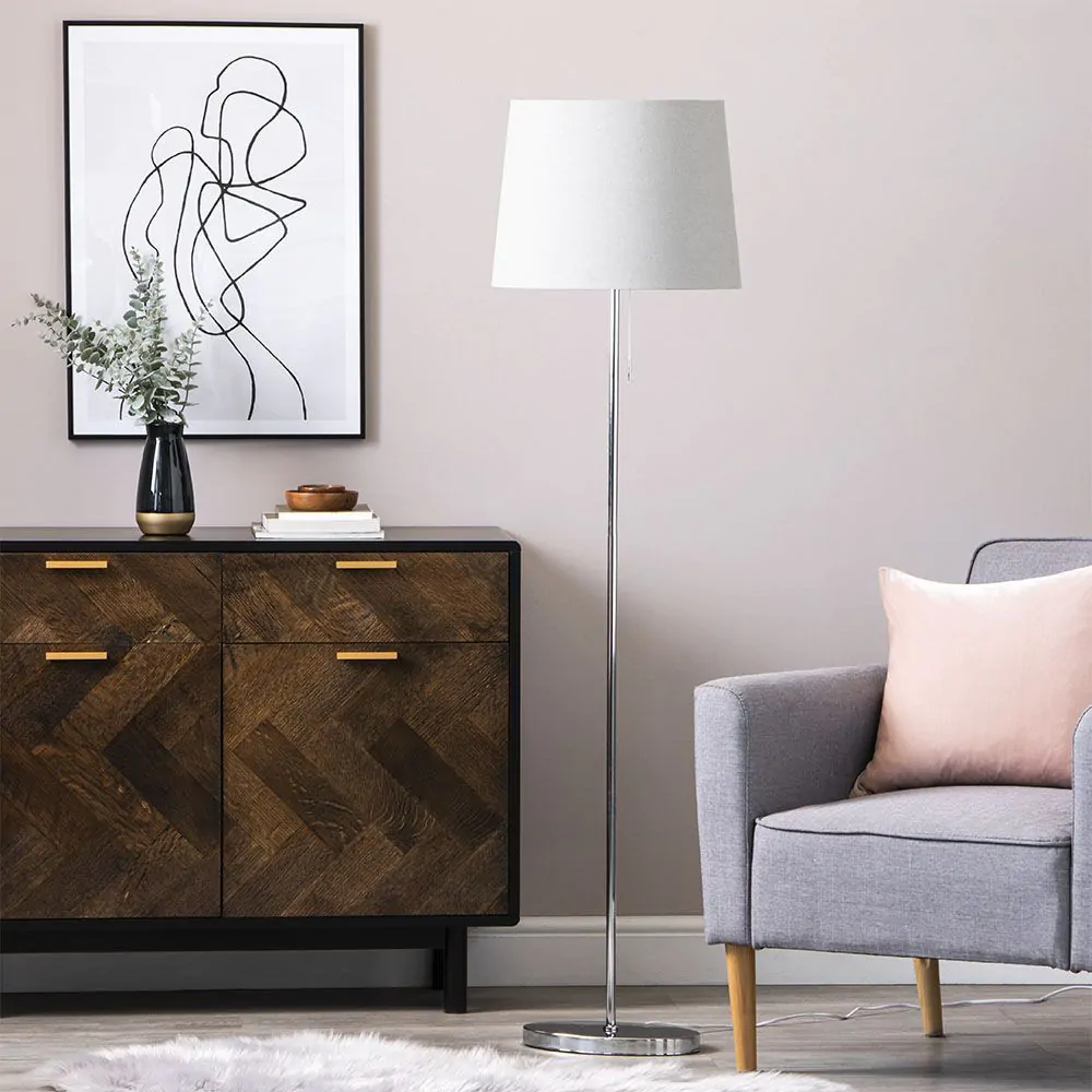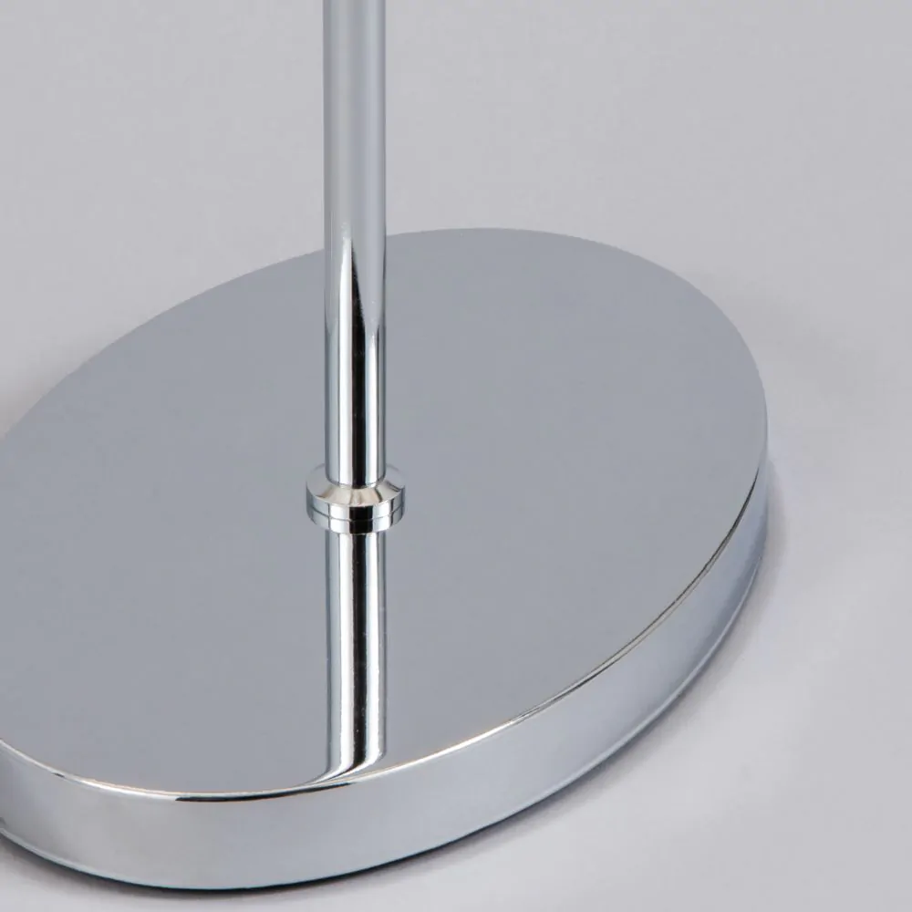 Modern and subtle, the Bryant oval shaded stem floor lamp is the perfect addition to any minimalist-inspired space in your home. The chrome finish offers a modern polished look ideal for rooms with light grey or monochrome colour schemes. This beautiful floor lamp is the ideal minimalist fixture for any corner of a living room, modern dressing room or bedroom.