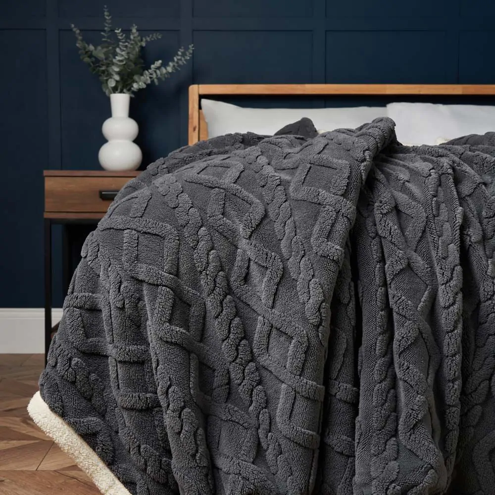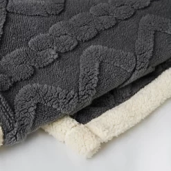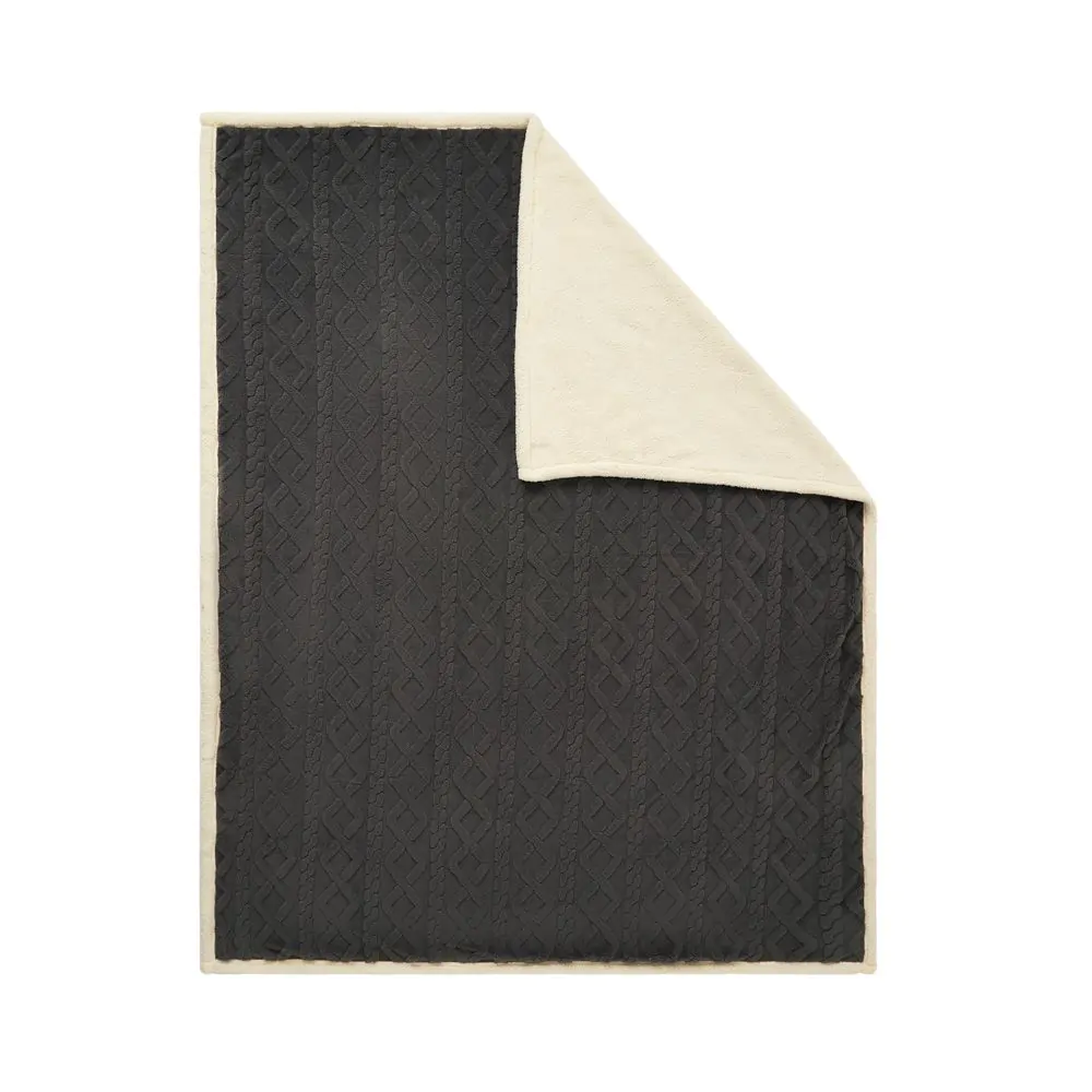 Cable Knit Throw with Sherpa Backing, Charcoal