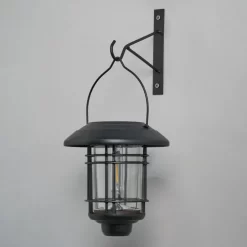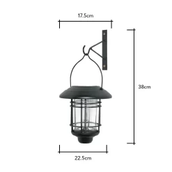 The Caelum LED Outdoor Solar Hanging Wall Light in black is the perfect lighting to add a stylish, vintage touch to your home. The attached handle on these lanterns makes them ideal for use as a hanging lantern at the side of doorways or patios. Providing you with a soft glow of lighting and giving your home that cosy look. Integrated LED’s ensure these ligths are super efficient. The light charges itself with the sunlight.