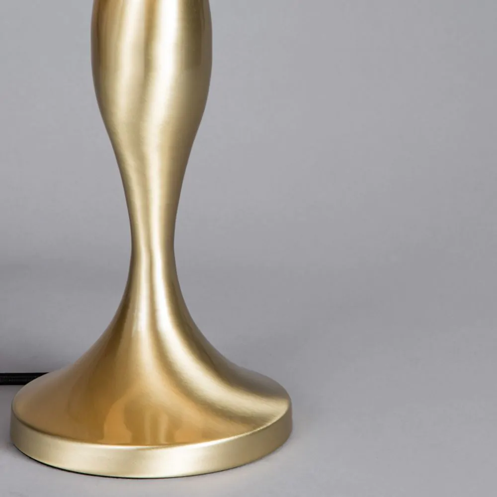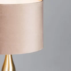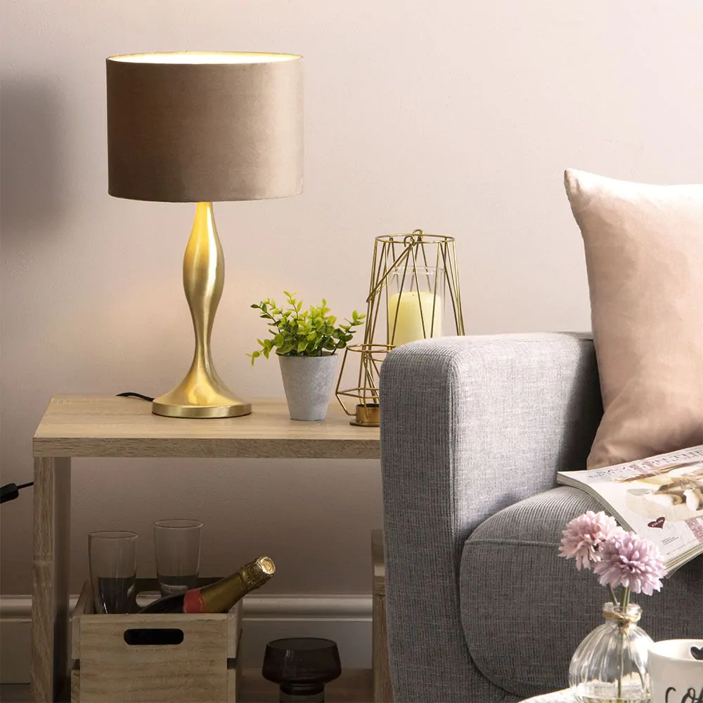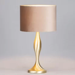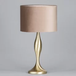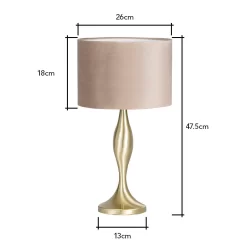 Add a luxury mood light to your bedroom decor with the Calais Spun Metal Lamp with Champagne Shade. Finished in brass, the metallic base adds an eclectic, modern edge to your interiors while perfectly complementing the champagne velvet shade. The abstract design features a spun detail – giving the lamp more personality.