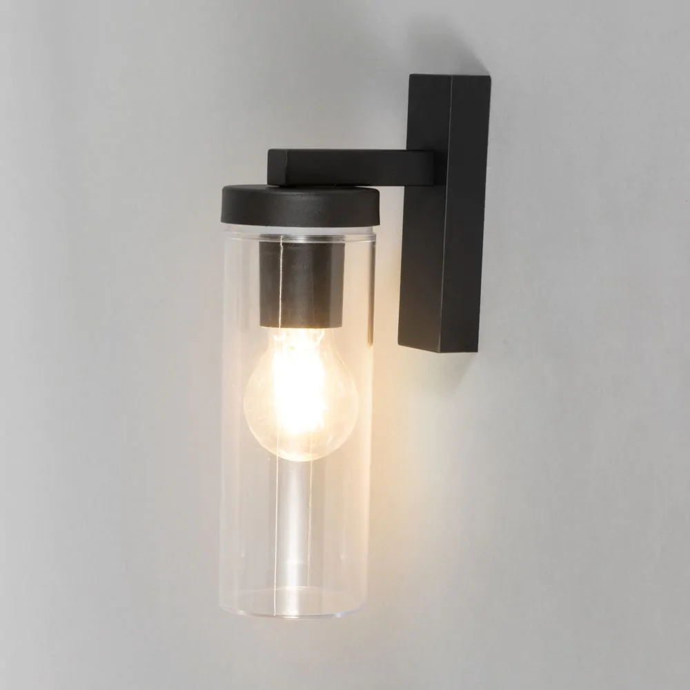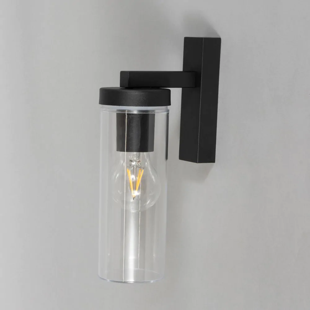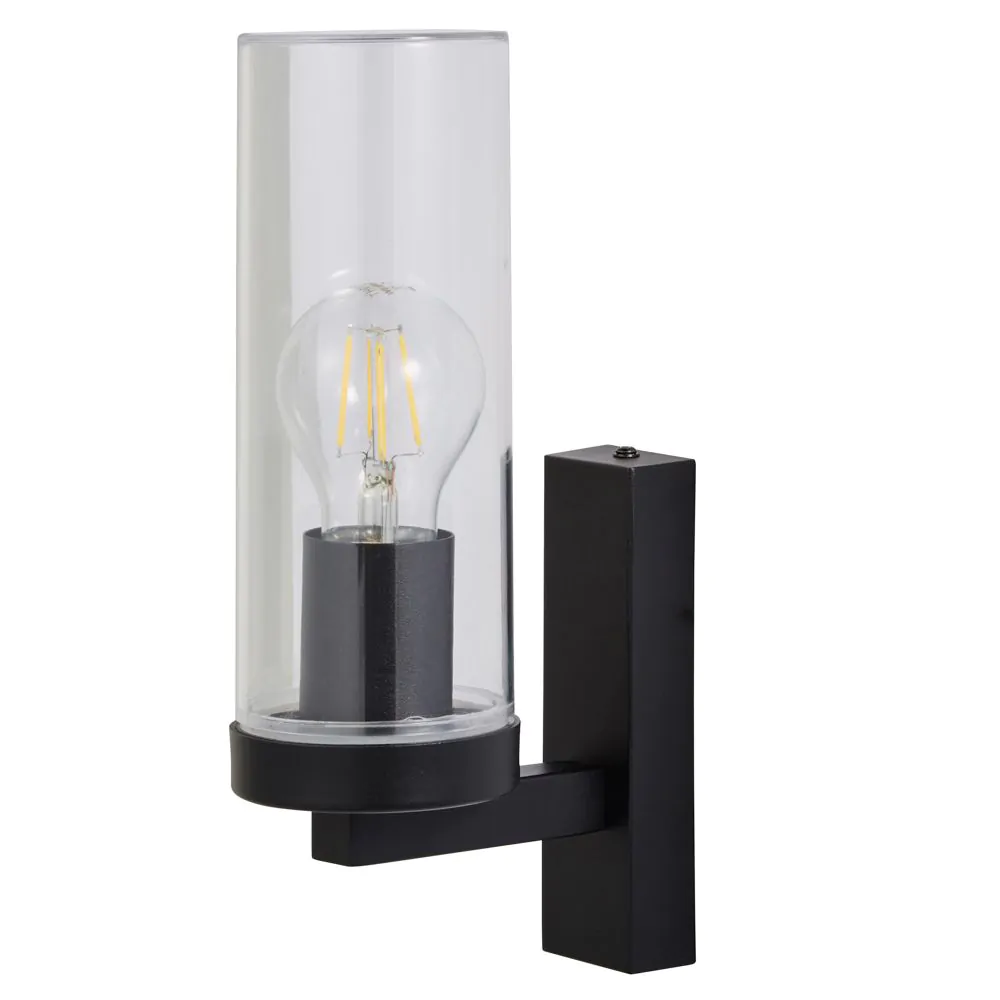 Versatile lighting designs for the exterior of your house with the Carlton Up or Down Outdoor Wall Light. This wall light can be styled as either an up or a down light depending on your preference, and is IP44 rated to ensure water resistance against outdoor weather conditions. It also comes in a sleek black finish for a modern aesthetic and features a stunning clear glass shade that looks ideal when paired with a separately sold vintage filament light bulb.