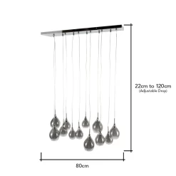 Bring the ultimate statement piece to any modern kitchen with the Carmella Diner Ceiling Pendant Bar. This ceiling light features a gorgeous reflective satin chrome ceiling plate and has individual height adjustable hanging pendants for you to customise to suit your preference. Each pendant is a different size and features smoked glass shades which encase frosted glass shades for a subtle but stunning light projected outwards across the room.