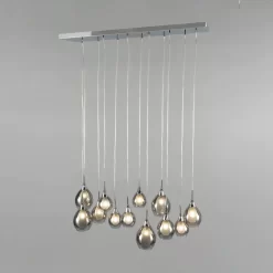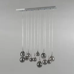 - Features tiers of individual hanging pendants for a statement aesthetic;