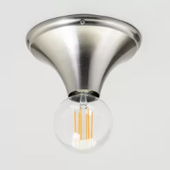 Give your room an urban look with the Carrie Ceiling Rose for E27 Lamps. This flush fitting looks ideal when paired with E27 vintage filament light bulbs (not included) and offers a sleek, modern satin nickel finish. It also features a simplistic design that offers a minimalist appearance, perfect for low ceilings.