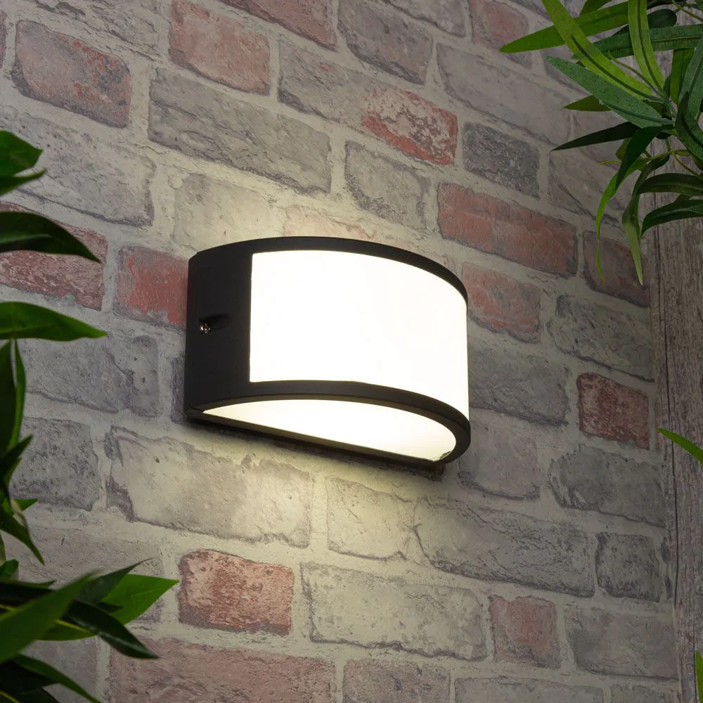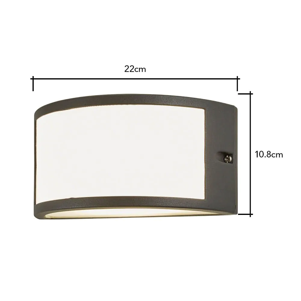 Bright and practical outdoor lighting for your garden space with the Chase Outdoor Bulkhead Wall Light. This wall light comes in a sleek anthracite finish and features a curved design for a modern aesthetic. This light diffuses a stunning glow outwards through the opal glass shade and is IP54 rated to ensure sufficient water resistance against outdoor weather conditions.