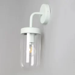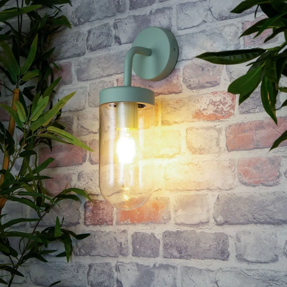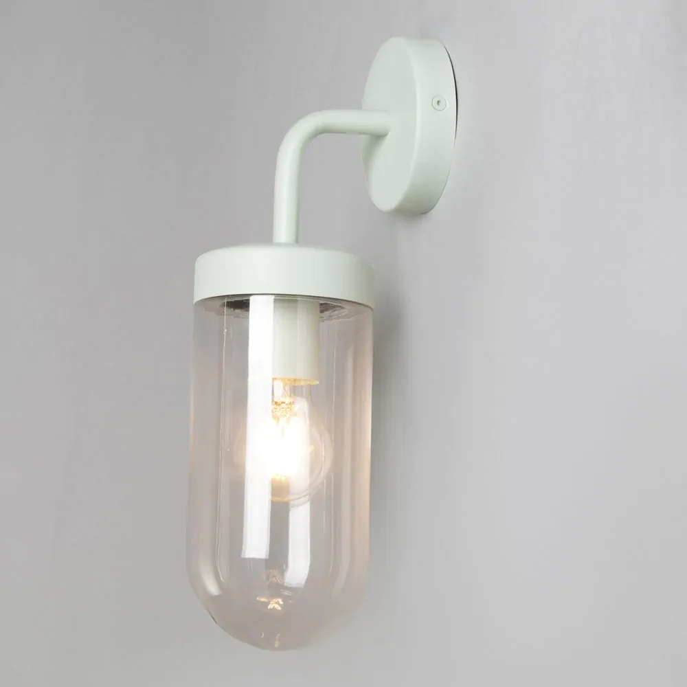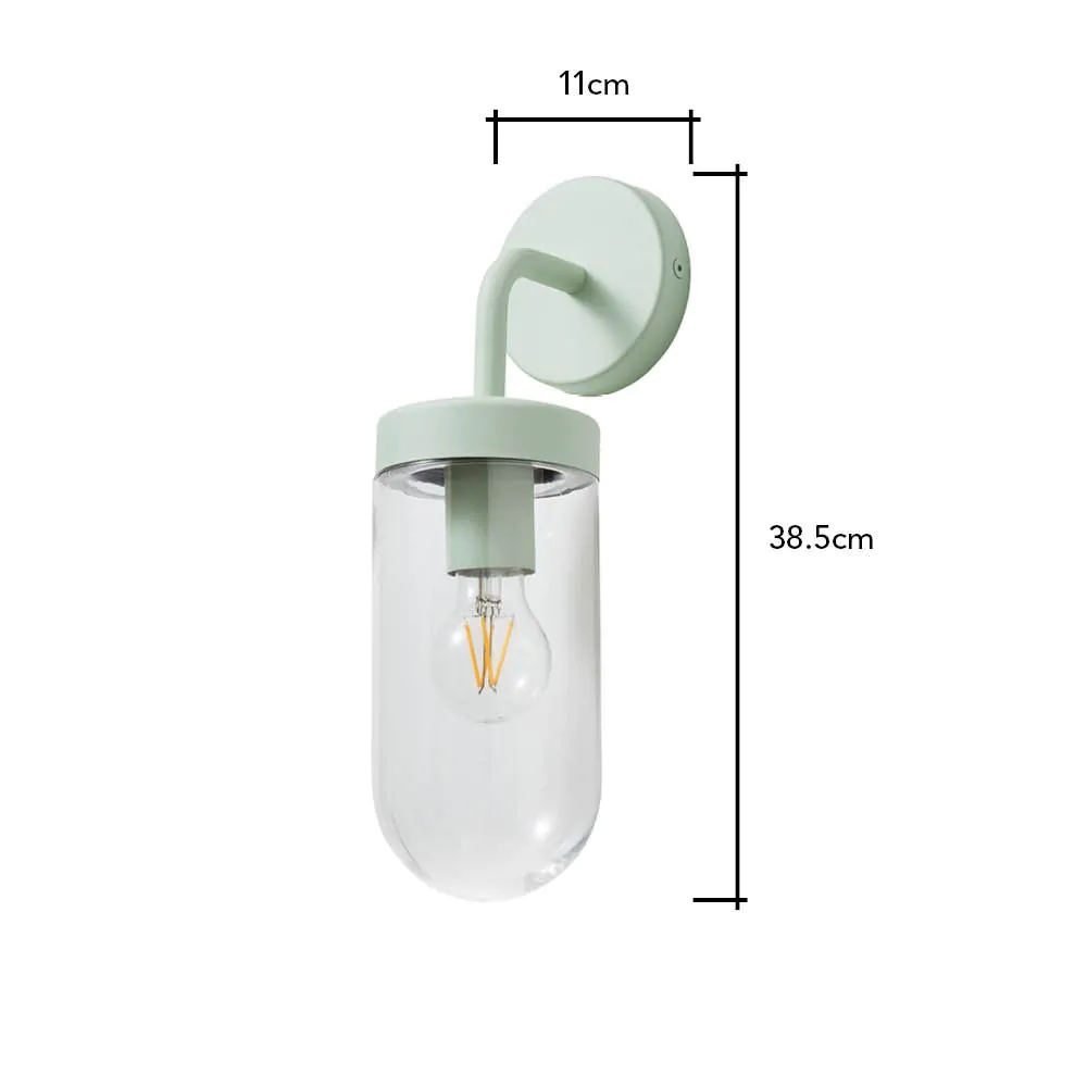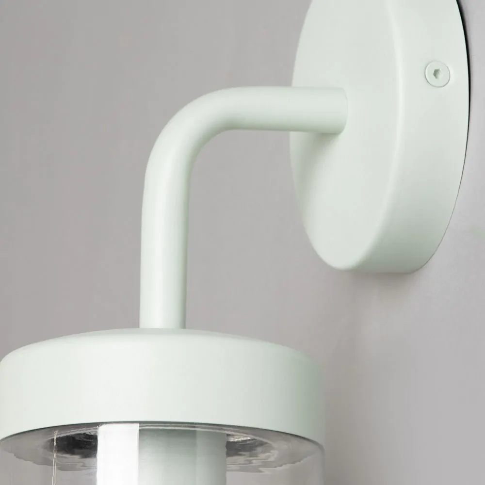 Add a fresh look to the outside of your home with the Chelsea Curved Arm Wall Light. This wall light fixture comes in a mint green finish, adding a touch of character to your porch or entryway, and is IP44 rated to ensure water resistance against outdoor weather conditions. It also features a large clear glass shade which looks ideal when paired with a separately sold vintage filament light bulb for a decorative appearance.