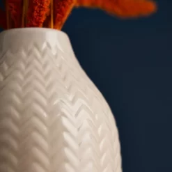 Introduce a touch of timeless elegance to your space with our Chevron Ceramic Vase in Cream, a classic piece that adds a sense of sophistication. The chevron pattern creates a visually appealing texture, while the creamy hue complements any decor style. Ideal for any living room or bedroom, this vase can be styled on bedside tables or sideboards.
