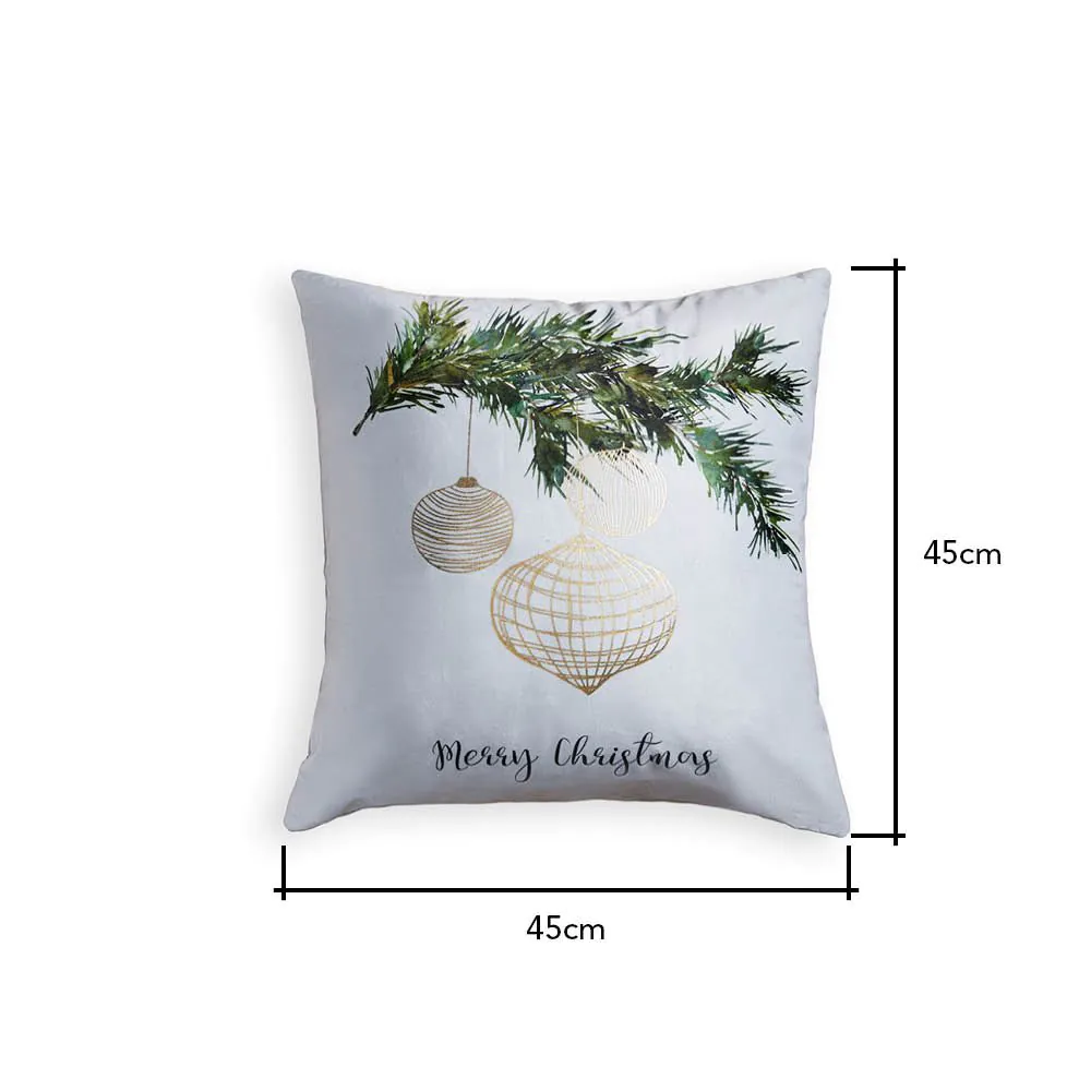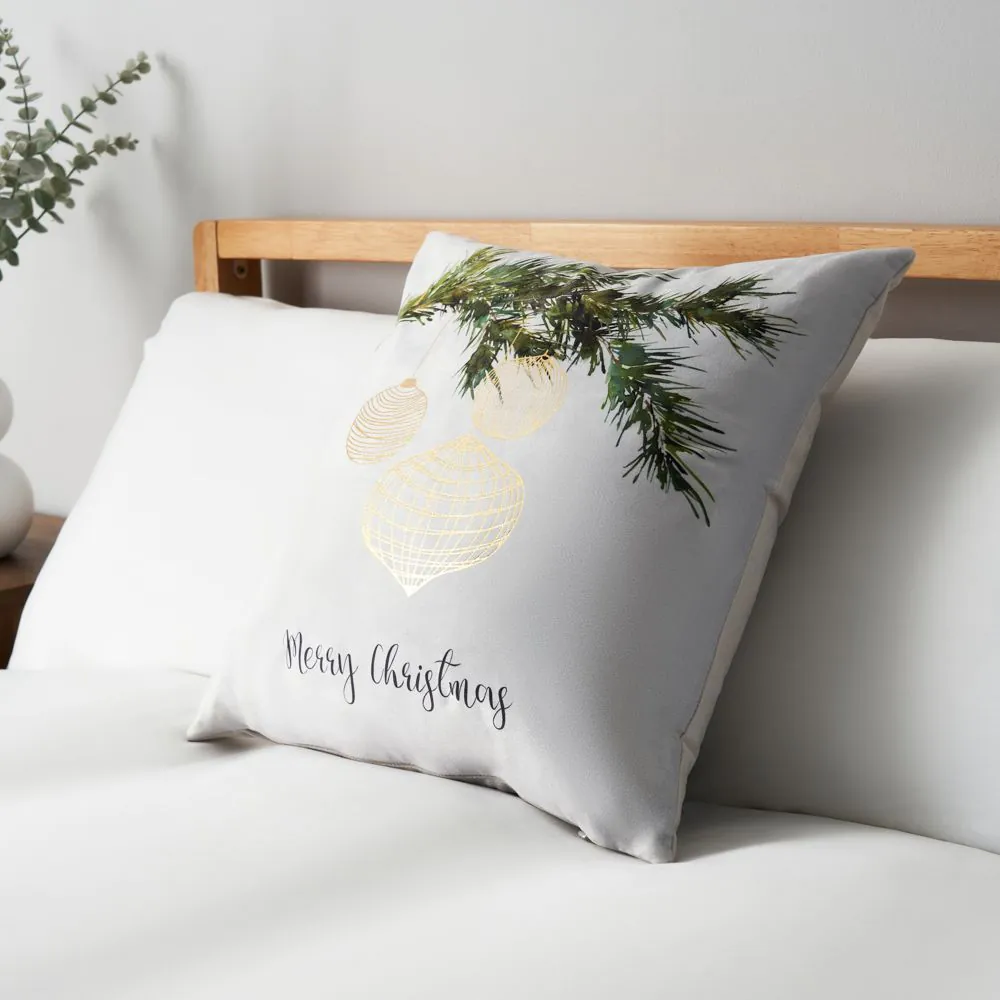 Opulent Christmas-themed soft furnishings for your decor with our Christmas Bauble Cushion featuring a stunning foil design in Gold and Natural. This cushion showcases a festive bauble pattern with a touch of shimmering foil, adding a luxurious ambience to your living space. This cushion looks ideal when you mix or match it with any of our other Christmas cushions and measures 45x45cm for a comfortable fit on any chair or sofa.