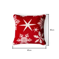 Complete your festive decor with our Christmas Snowflake Cushion in Red. Snuggle up with this cushion and enjoy the cosy ambience it brings to your home, looking ideal when styled in pairs or matched to our separately sold red snowflake throw. The snowflake design adds a touch of elegance to your seating area while capturing the holiday spirit.