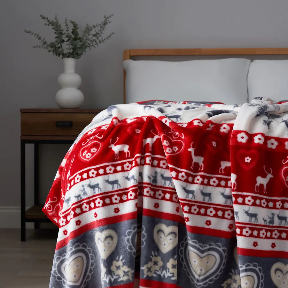 Christmas Winter Snow Throw, Red and Grey
