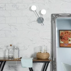 Minimalist lighting looks with the bathroom with the Cian LED Bathroom Wall Light. This wall light comes in a modern chrome finish and features a circular 2 light design, diffusing a bright glow into the room. It is also IP44 rated, meaning that it is water resistant enough to be safely used in the bathroom.