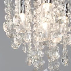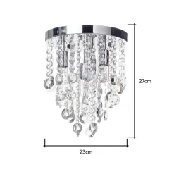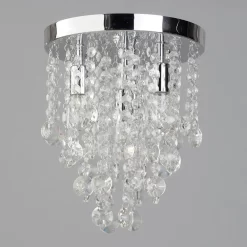 This flush ceiling light helps you to bring a stylish fitting into a room with lower ceilings, meaning you can create a more creative décor without the restrictions of a reduced ceiling drop hindering your designs. The modern chrome structure features an arrangement of crystal droplets hanging down, which surround and catch the light as it shines to give a unique, elegant twist to the illumination.