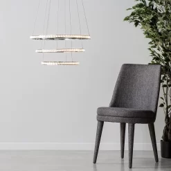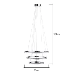 For bold, eye-catching contemporary style in your home, look no further than our Comet pendant fitting! The stunning modern piece features a suspended 3 hoop design, which is sure to catch the eye as a stylish centrepiece. Integrated LED is built into this fitting, giving durable, energy efficient lighting to the household, whilst a chrome finish gives an updated look to this sophisticated piece. The hanging design makes this a truly breath-taking addition to your home, particularly as a bold statement piece over a dining room table!
