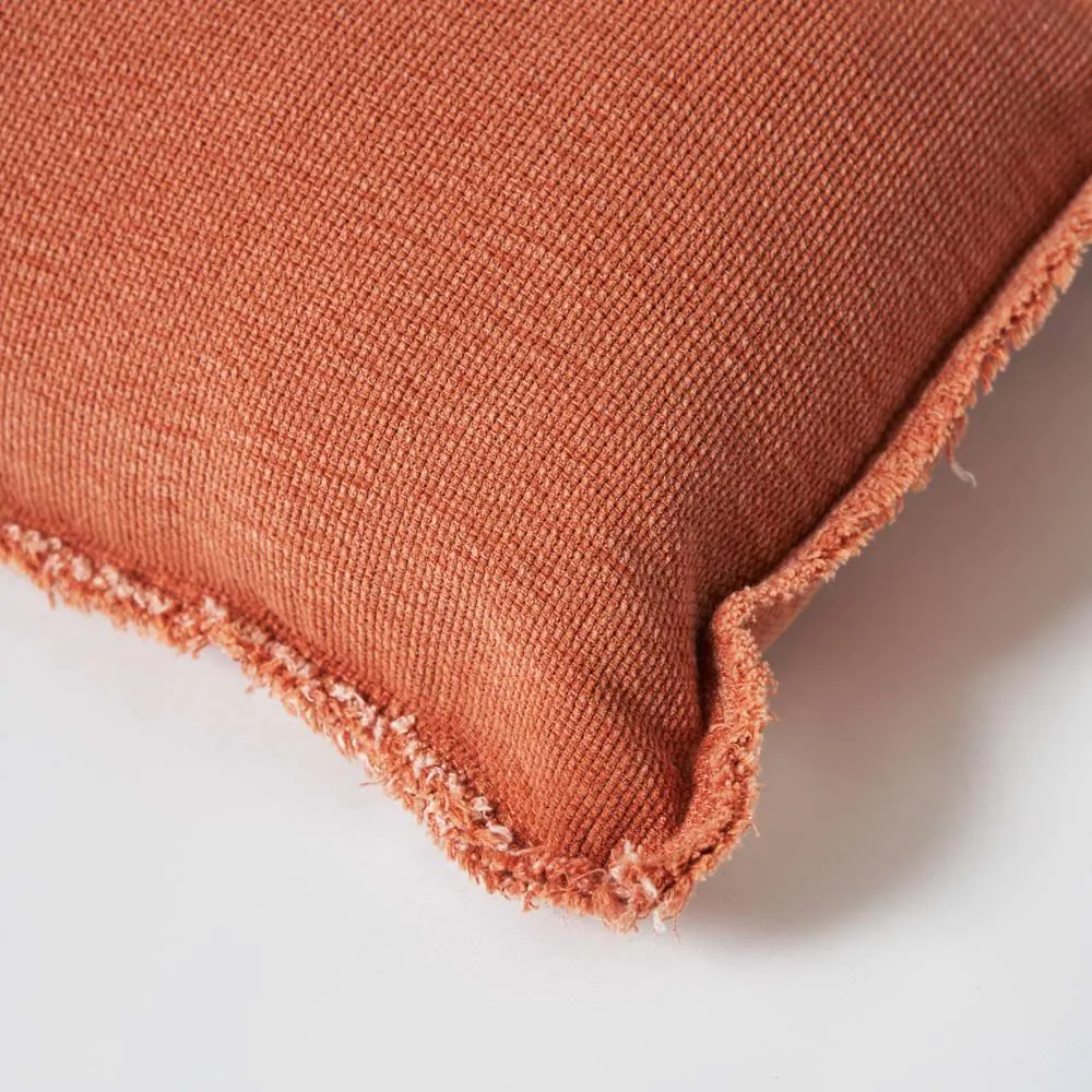 Enhance your home décor accents and soft furnishings with our Cotton Cushion with Frayed Edge, measuring 45 x 45cm. Available in a rich palette of feminine earthy tones, including Burgundy, Terracotta, Cream, and Blush, these cushions effortlessly blend comfort and contemporary style. Style these cushions in pairs on any bed, sofa, or chair for a symmetrical appearance in your home.
